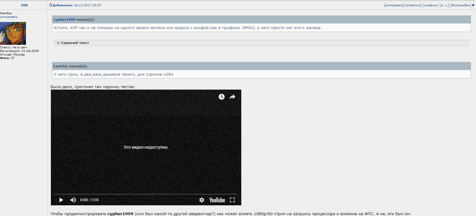 Lorichic ОЧередной пример демагогии. Почему голос стримера "запикан" музыкой ? Второе - этого стримера я видел где-то. Поэтому - очередной фэйк и введение в заблуждение. Пущай сделает еще 5 15ти секундных "стримов", в которых будет проговорено в вебку "специально для оверклокерс ру и для флэймовой темы про кофилейки". Тогда я извинюсь за недоверие.
