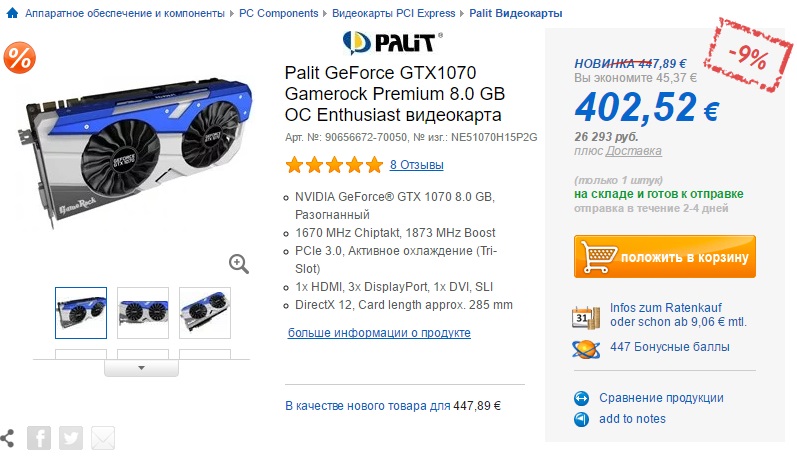 В регарде 1060 3Гб стоит 22к и то продается только при заказе сборки ПК, веселуха конечно, рад я что 2.5г назад завязал с десктопами, продав профильный, все равно еще за полгода до его продажи перестал играть))) Бедные геймеры - доят и доят их то игроподелками кривыми и год после выхода их патчами допиливают, то ценами на карты, сдается мне Хуанг в сговоре и причастен к росту биткойна)))) Карты наверно быстрее чем шаурма продается, ахахаха