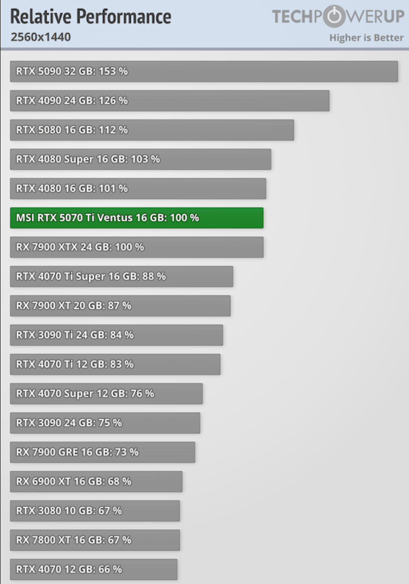 5070 ti осказалась даже выше ожиданий. по спекам там совсем тухляк был в сравнении с 4080й. а как видим, новая архитектура все-таки эффективнее в пересчете на ядро.