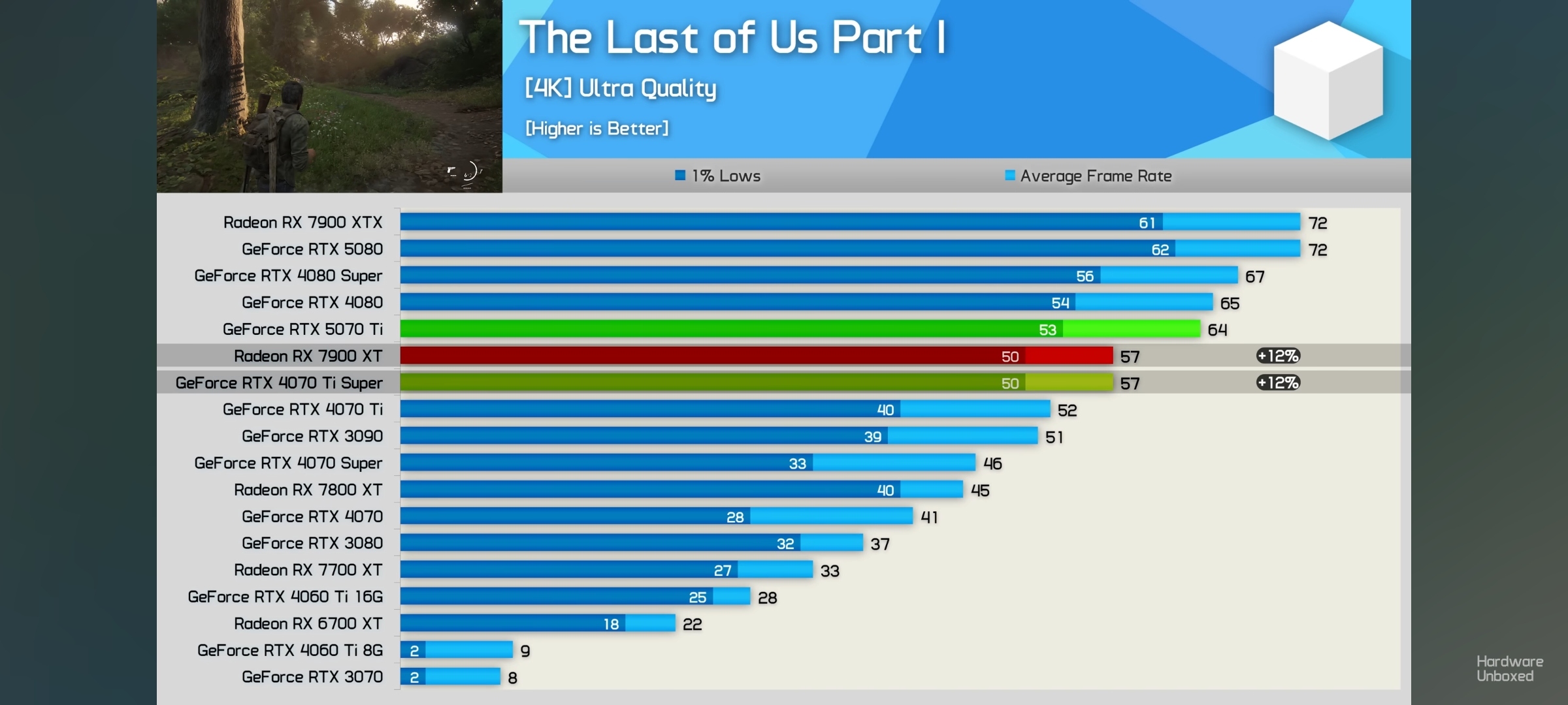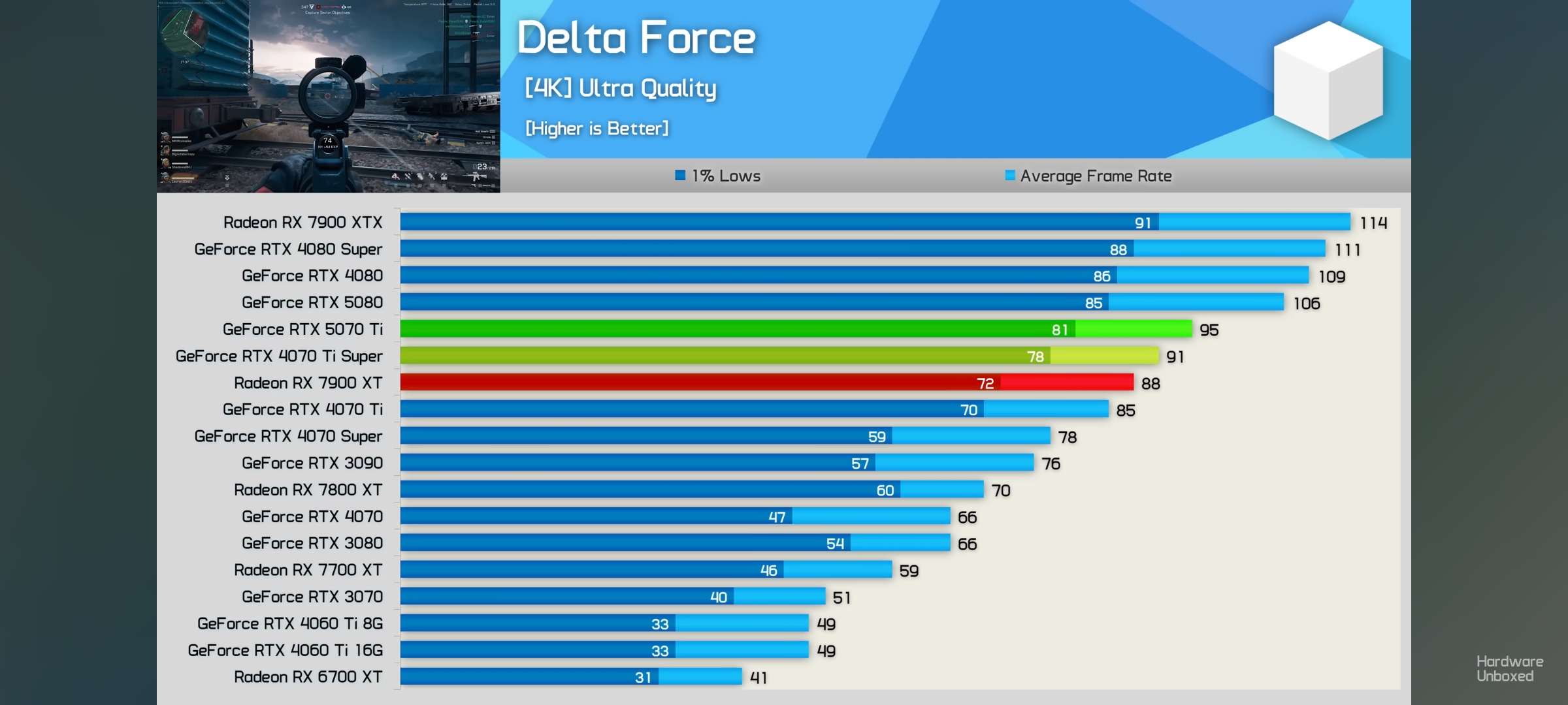В среднем то все равно 5080 мощнее чем 7900хтх.