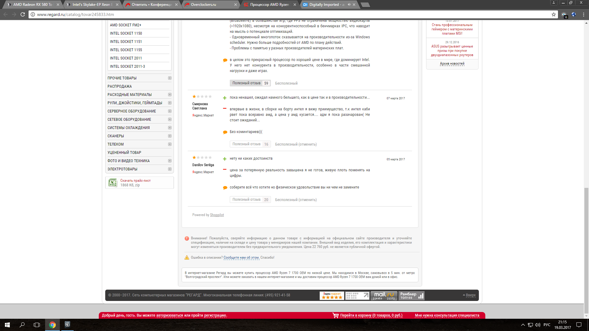 А там же любой может зайти и написать отзыв, не так ли ? Ест у него процессор или нет ? Купил не купил. То есть я могу сейчас зайти/зарегатся за пять сек с левого имэйла и написать там что он полное говно, или кто то из пиар отдела АМД может зайти и точно так же написать что он цаца, каких мир не выдывал ? Весь вопрос в том, что интересно и выгодно из этой писание оставить а что удалить модерараторам магазина, я ничего не перепутал ?