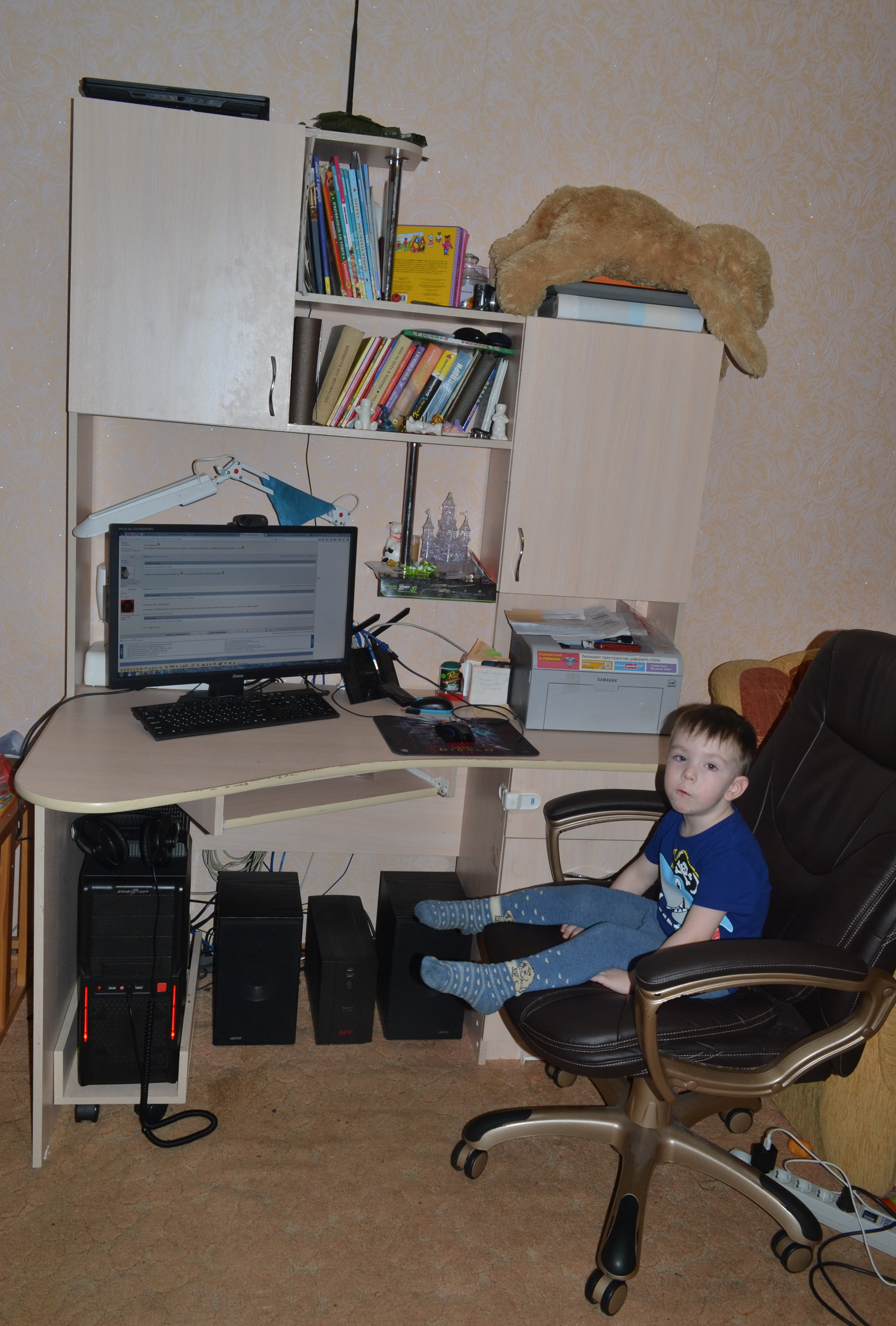 maxara Да брось пороть чушь и почитай мой пост внимательно. Но всё же повторю для тех кто в танке. Системник стоит на столе НО с правой стороны, то есть я занял им пространство которое зря пропадало так как я левша из за правостроннего дцп. Как я уже писал возможно сделаю удлинение стола но только весной и то не 30...45 см которые планировал а сантиметров 20...25 что бы саб сместить на левую сторону. И еще раз повторюсь; системник лет уже 10 стоял на столе стоит и будет стоять на столе так как только мне и только мне так удобно а остальное пофигу.