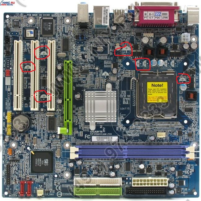 Уже нашел, коротил, не помогает. Подставлял видеокарту - 0. В АМД был заклинен кулер, смастил, даже с работающим вентилятором радиатор греется сумашедше, пожоже кирдык проц. В Интел, даже без радиатора проц. холодный, как рыба об лед. Южный и Северный мосты чуть теплые. Чёто дохрена нахватает эл.литов. Х.з. или их там не должно быть, или выпаяли. БП менял. Мда, нашел картинку в инете, тоже нет этих эл.литов