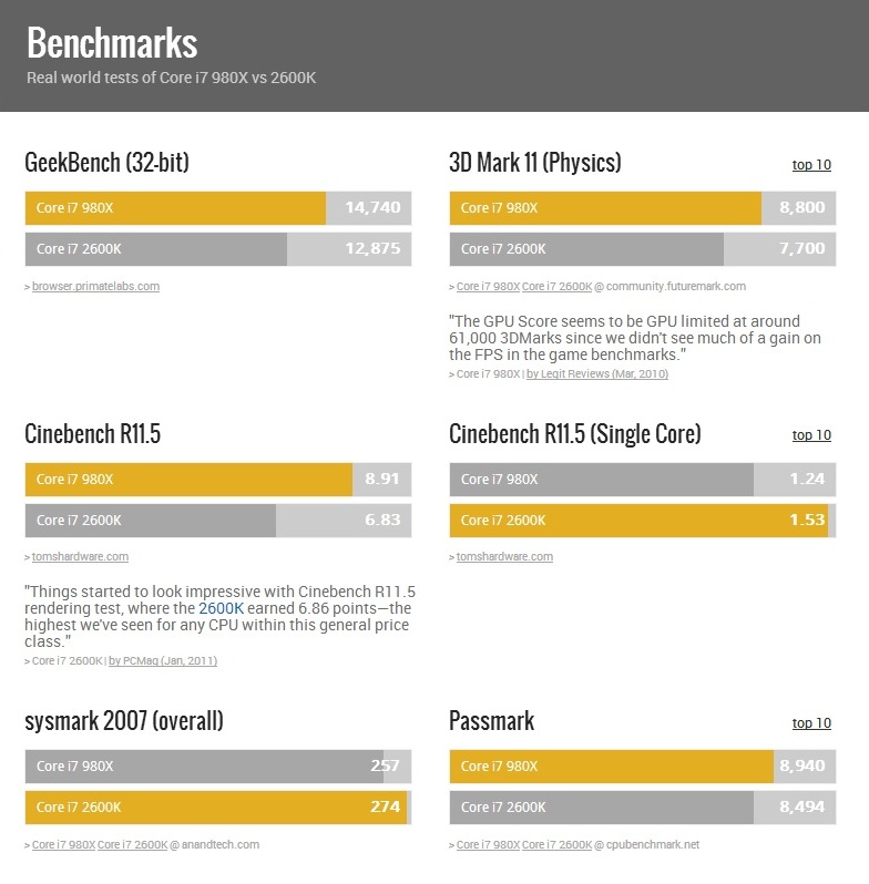 всем привет прочитал в одном обзоре i5 2300 вот такое Анализируя результаты проведенных тестов, мы приходим к выводу, что Intel Core i5-2300 уверенно конкурирует с процессорами Intel Core i5-750 и Intel Core i7-980X EE реально Intel Core i7-980X EE на ровне I5 2300 ???
