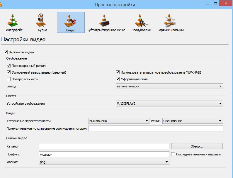 на двух компах попробовал на нескольких разных последних версиях влс, игнорится настройка вывода на второй монитор или я чего-то упускаю вот так ставлю