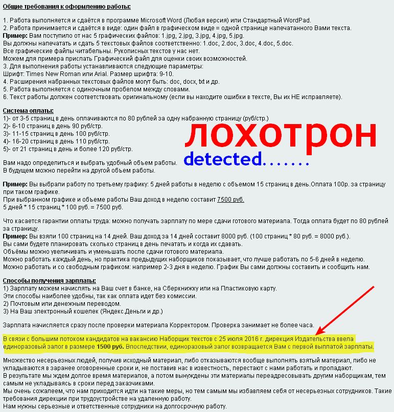 Вскоре после размещения своего резюме на job.ru получил от т.н. "Отдела персонала" предложение заработка-набор текстов на дому.Скрин прилагаю. ------------------------------------- П.С./ обратил внимание что текст с сайта по полученной ссылке не копируется обычным способом "выделил-скопировал"