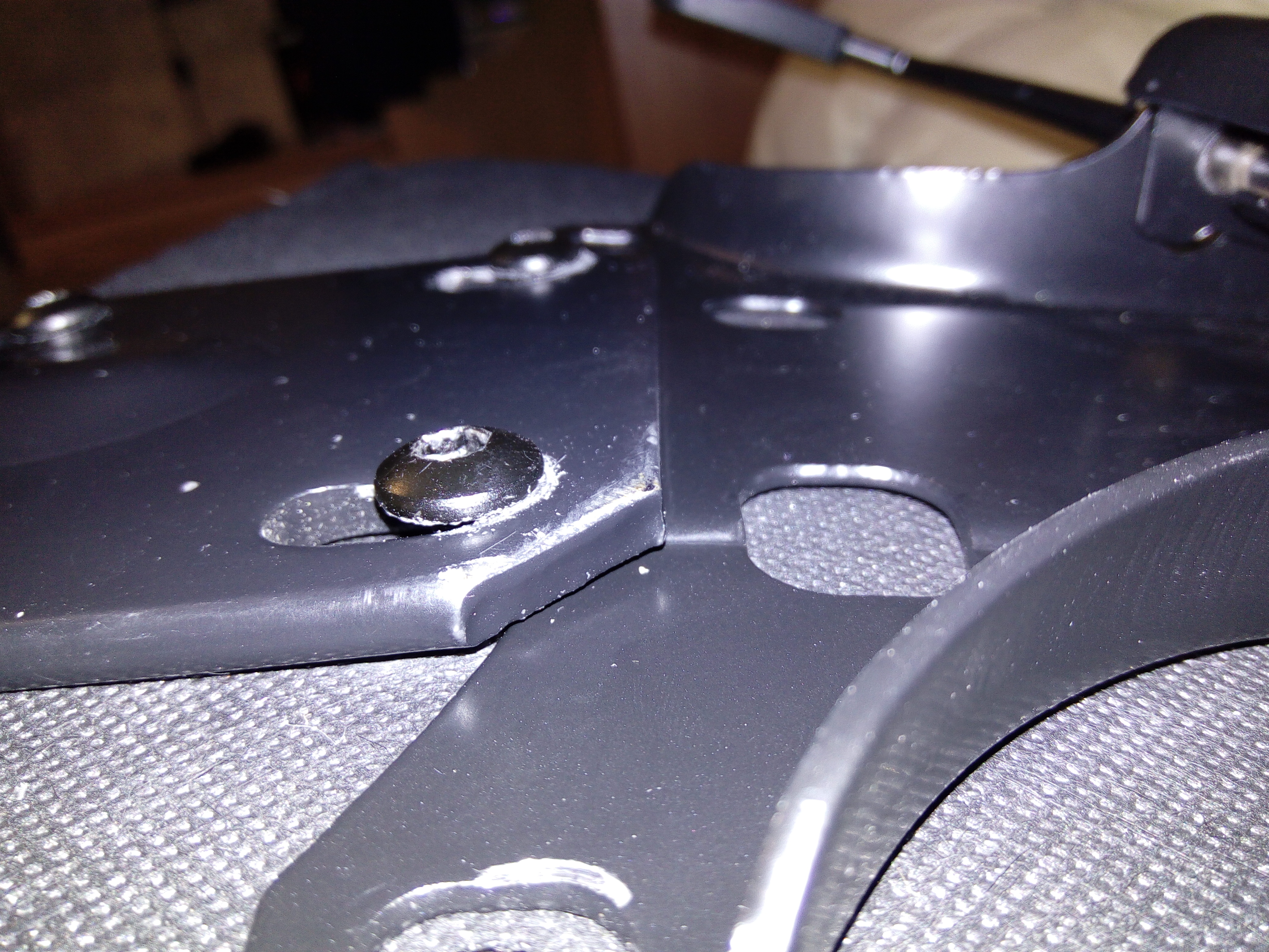 При сборке возникла проблема: металлическая пластина, которая крепит спинку с сидушкой, накрывает пластину от системы качания. По идее так не должно быть т.к. остается приличной зазор и в будущем может вырвать болты.