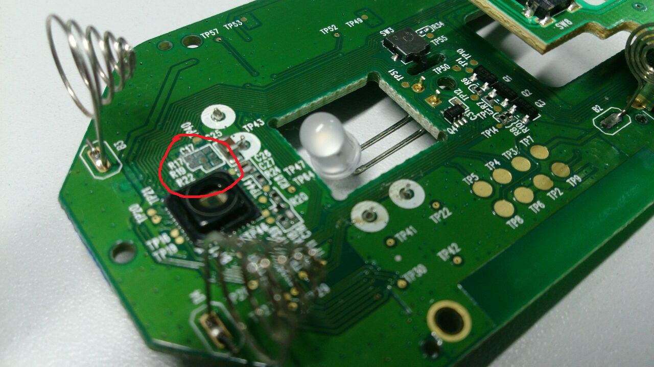Владельцы мышки Microsoft Wireless Mouse 5000, у кого есть возможность, подскажите какие значения элементов R17, R19, R22 и С17 на плате. Фото куда смотреть прикладываю.