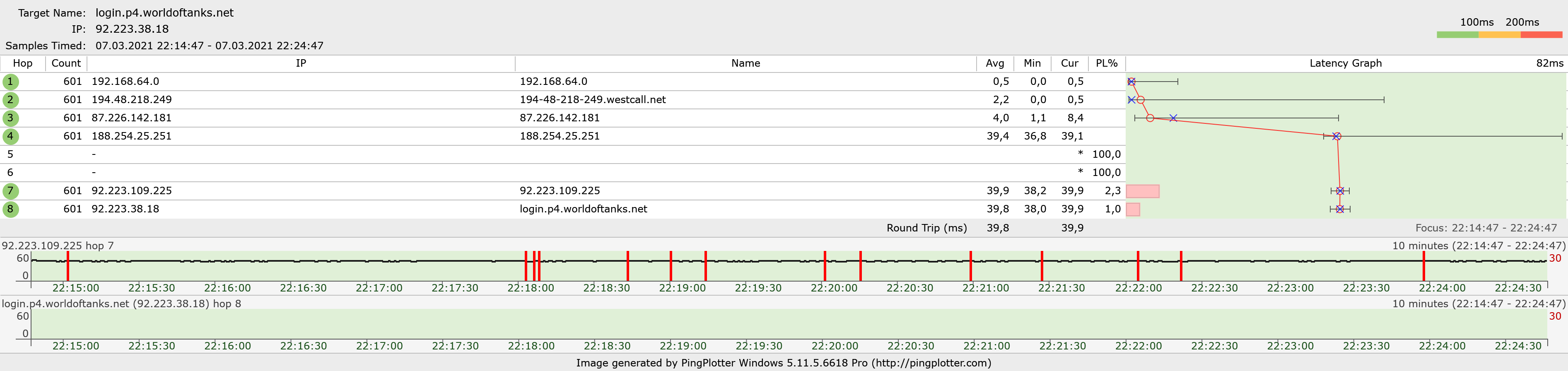 Кто подскажет, почему если пингую с подключённым роутером, то в Pingplotter в списке отображается всего 3 ip (мой, провайдера и конечный сервер),