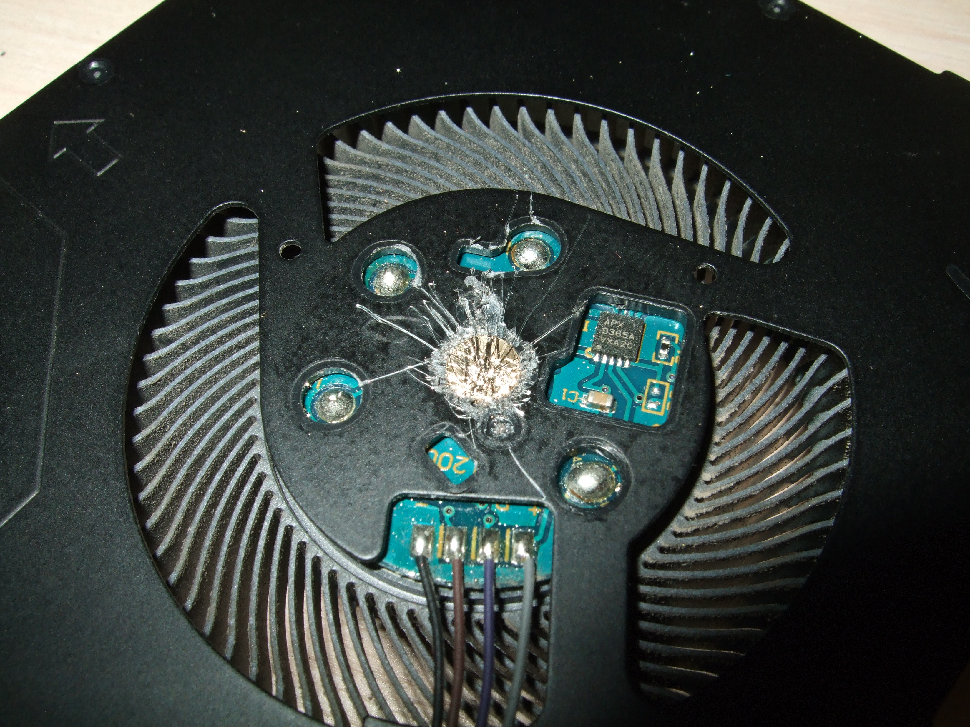 А верхняя часть корпуса пластмассового у кулера специально не снимается Иголкой тыкался.. результата нима. Конечно посверлить приспичило, но при единственном хоть как рабочем экземпляре извращаться не стал.