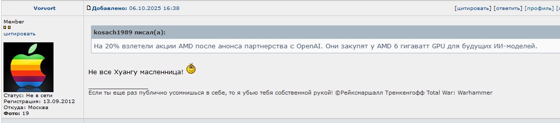 За годы нахождения тут, я столько получил опыта, и раздал советов что не счесть. Ты был одним из первых форумов в РУ сети. И лично благодарен тебе за то, что десятилетия спустя Ты не меняешь структура сайта и форума... и интерфейс такой же как в начале 2000ных!! Желаю оставаться таким же в будущем. А ребятам из АМС* только спасибо и процветания.