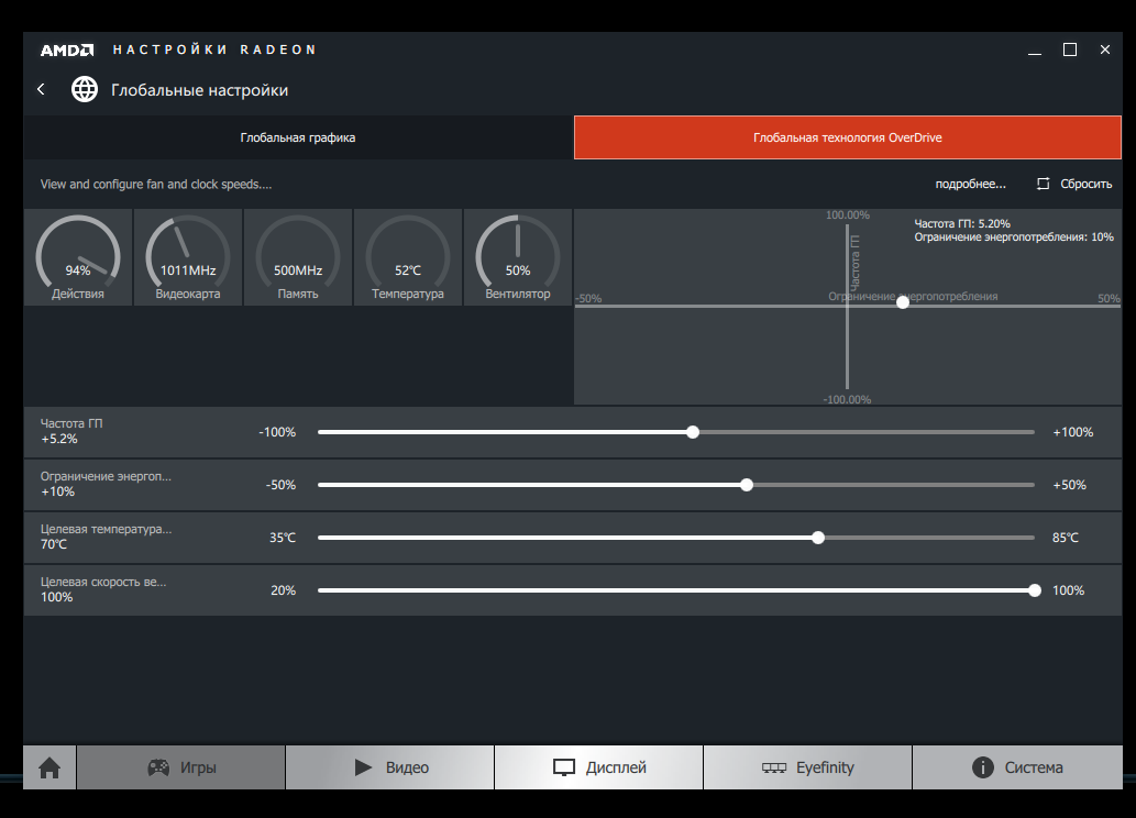 Когда пользовался афтербернером пользовался именно этим, т.к. автоматический режим позволяет разогреваться видеокарте сильновато. Но пользоваться афтербернером не хочу, не знаю каким образом, но он сажает производительность через какое то время на 30-50%, не только на радеон кстати. ПРосто сам по себе. Удаляешь его - и все встает на места.