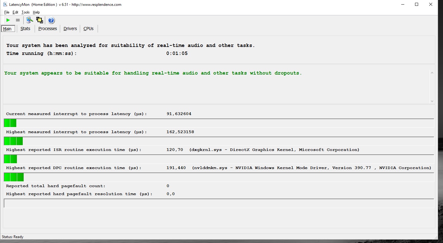 Да, читал. Разве в FAQ есть определения данных терминов ? Лично мой опыт показывает, что среди знакомых и друзей в данные термины вкладывают не одно и то же. ВО вторых, речь идет о ПАБГ. Возможно это особенность игры и у всех так. Поэтому привел с данными во время игры. При всем моем уважении (если шапку делали Вы), из нее не совсем ясно что и почему именно так надо делать. Например, я бы добавил "При подозрении на наличие задержки реакции системы (latency), микроcтаттеров, инпутлагов и фризов в НЕЗАВИСИМОСТИ ОТ ПРИЛОЖЕНИЯ, в котором они возникают, выполните мониторинг программой Latency Monitor нужно в течении 1 минуты .....". В дальнейшем текст с алгоритмом расшифровки результатов замера.