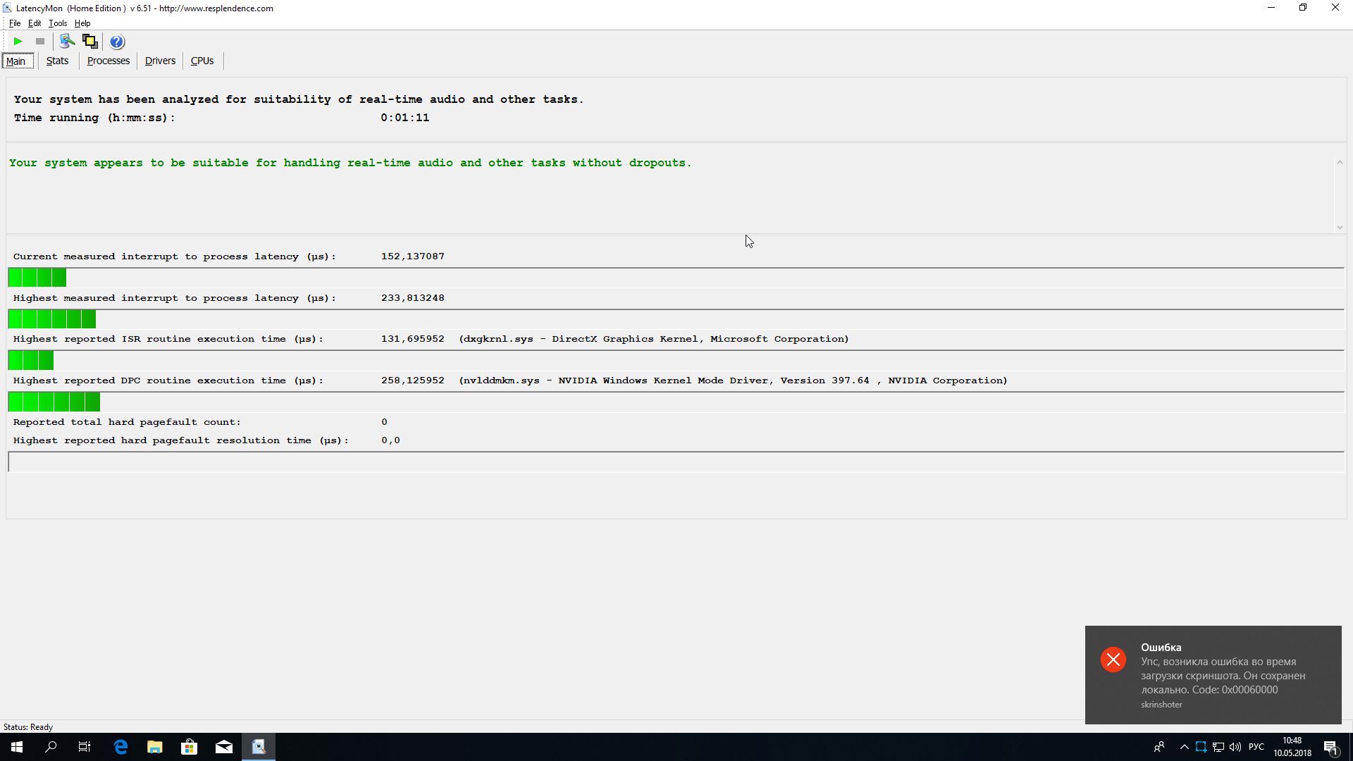 Раз такая пьянка, до кучи, прога CAM для подсветки от NZXT HUE+, а точнее служба при запущенной проге, поднимает DPC до 4к. Просто в тупорылых обзорах об этом не слова. Короче интеллектуальные режимы подсветки не поюзать нормально. Это как и с Corsair link, только там ещё хуже.))