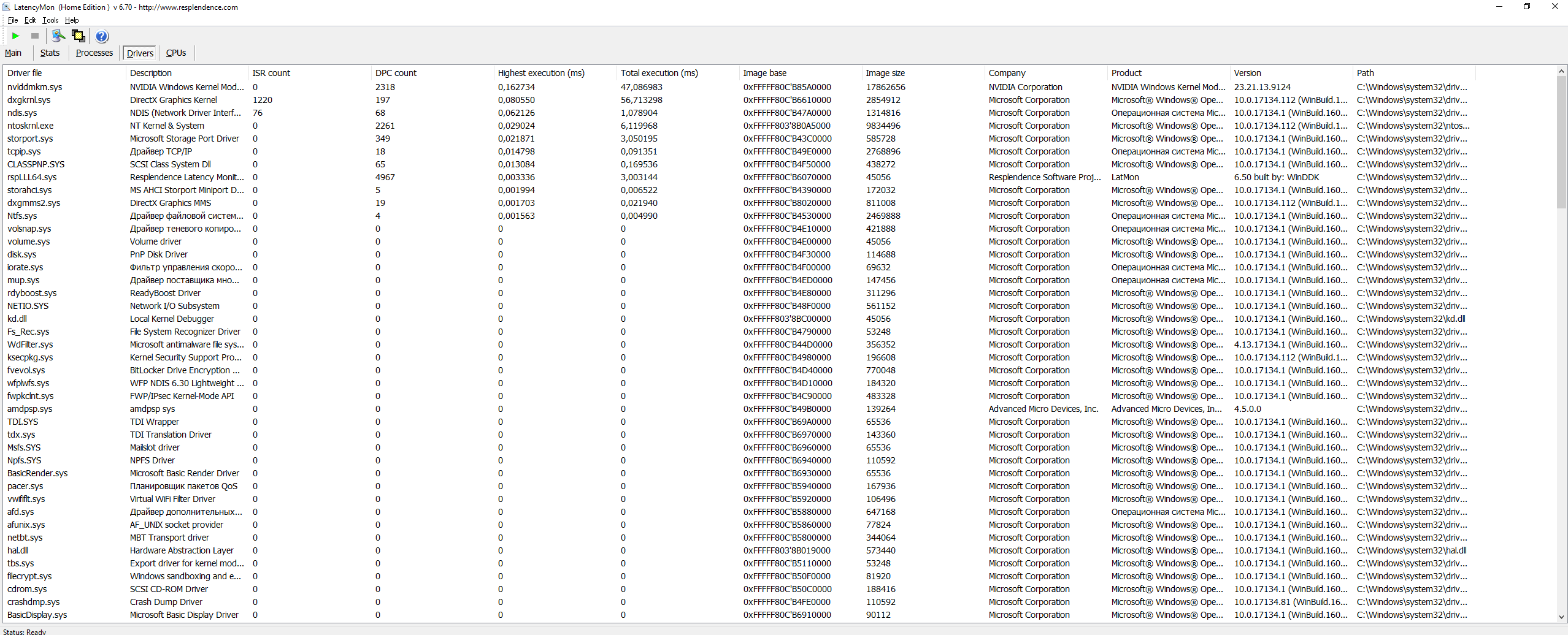 Осуществлять мониторинг программойLatency Monitorнужно в течение 1 минуты, в состоянии простоя системы т.е. без дисковой, сетевой активности, и любой другой, с выключенным ав и приложениями в трее и автозагрузке, не раньше чем через 2 минуты после загрузки системы. Не двигаем мышку и не используем клавиатуру в момент измерений. Потом остановка и скриншот.