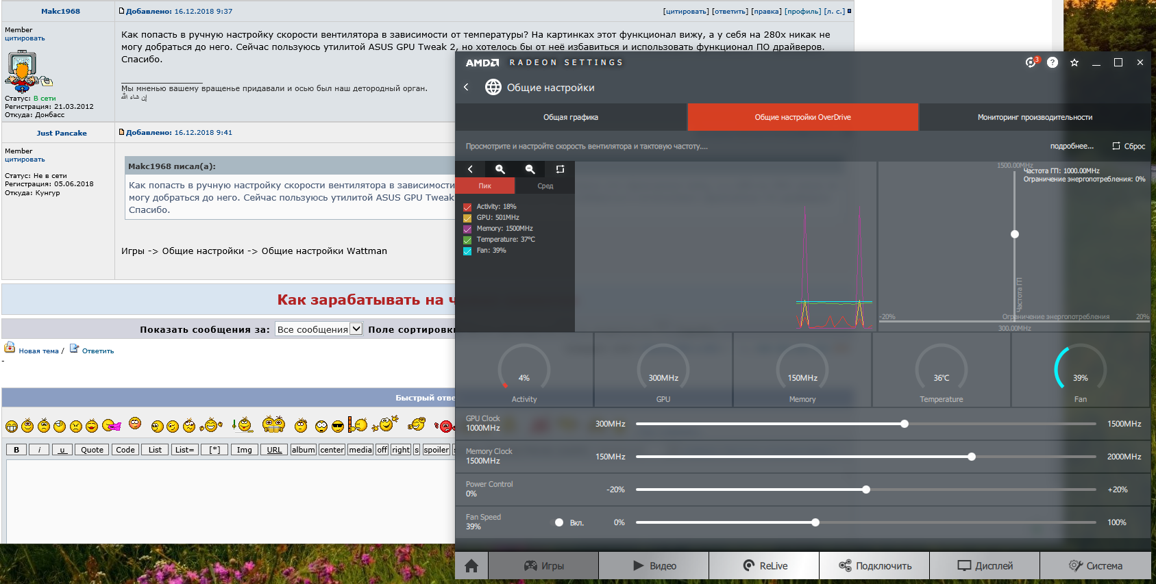 Как попасть в ручную настройку скорости вентилятора в зависимости от температуры? На картинках этот функционал вижу, а у себя на 280х никак не могу добраться до него. Сейчас пользуюсь утилитой ASUS GPU Tweak 2, но хотелось бы от неё избавиться и использовать функционал ПО драйверов. Спасибо.