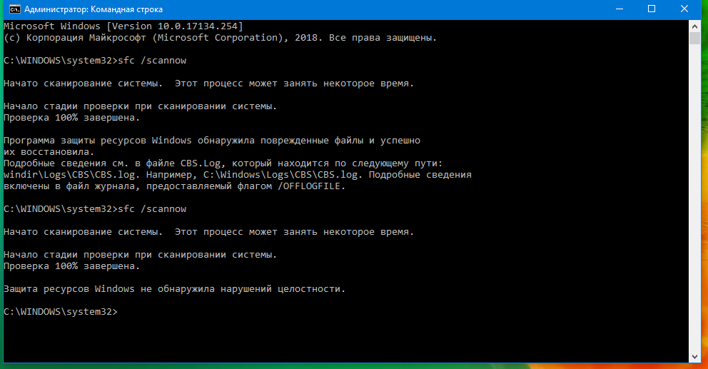 sfc /scannow, первый раз что то нашло и исправило. потом все чисто