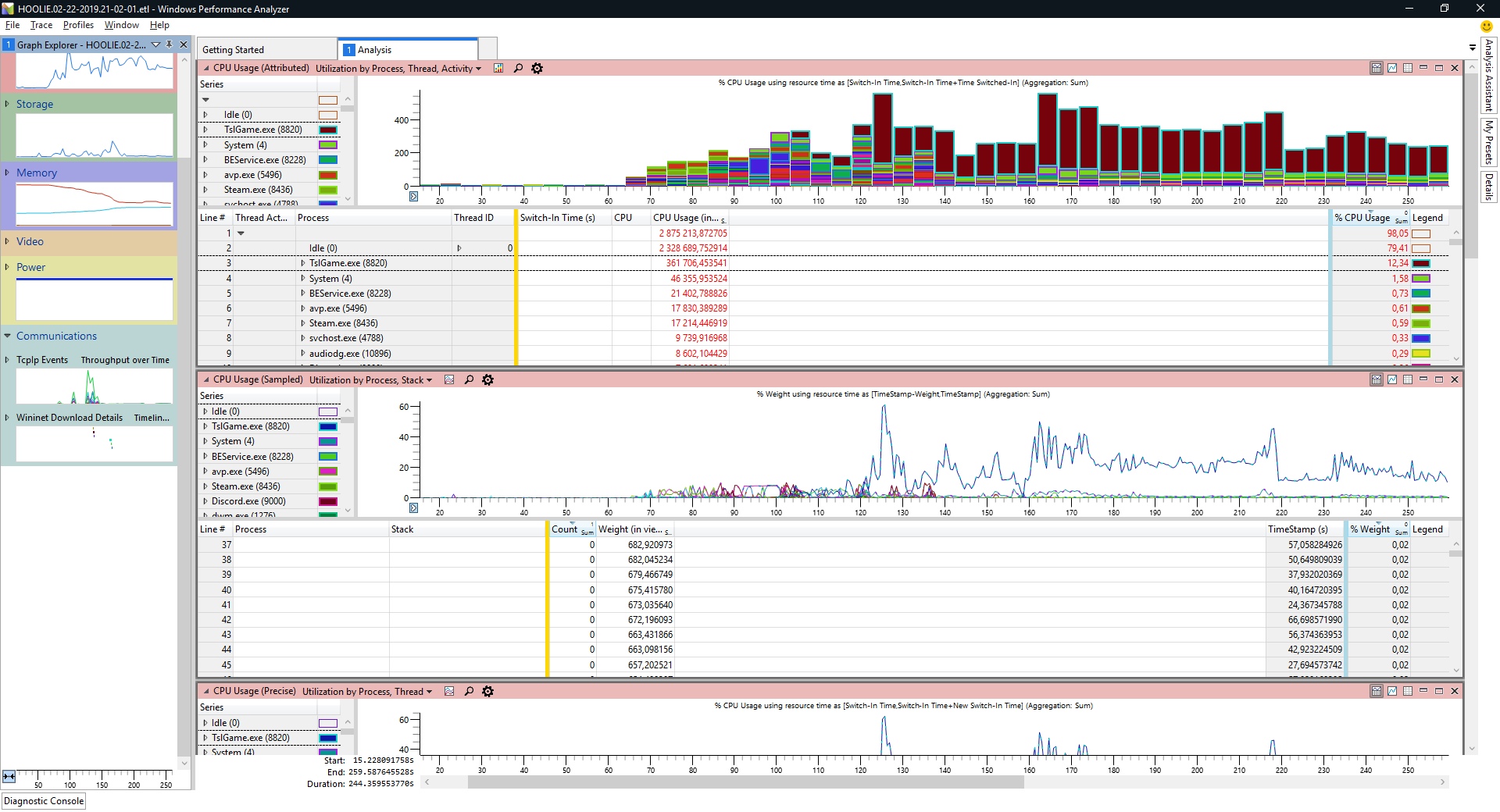 Вот проанализировал, windows recorder и analyzer как вы и сказали. Но ясности это не внесло, потому что не смотря на среднее знание английского я не понимаю в этом ничего. Вижу только что пабг рывками грузит процессор и видеокарту. Но я не знаю какими результаты должны быть, не с чем сравнить. В Analyzer поставил тестироваться все абсолютно. Еще могу добавить что замена видеокарты ситуацию не изменила, друг дал 1060 попробовать, микрофризы так же сопровождают игровой процесс. Может кто взглянуть на скрины и помочь расшифровать, могу так же добавить еще результаты из других разделов - напряжение, память, хранилища и тд.