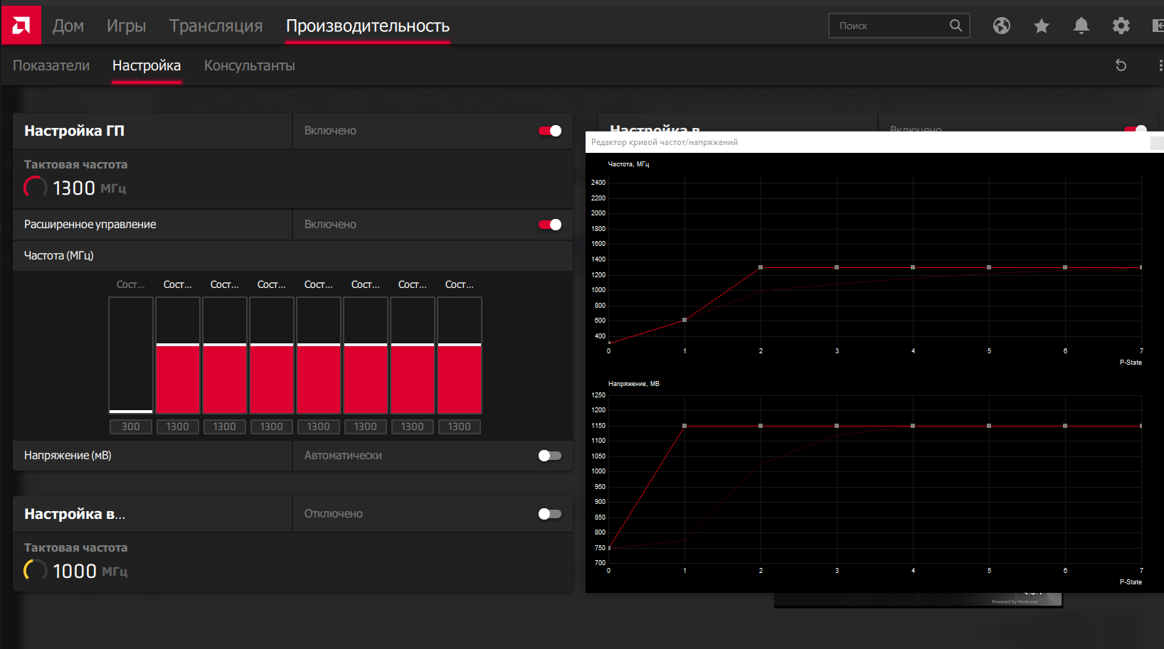 2. Этот вопрос я уже задавал. Как заставить карту работать ВСЕГДА и ВЕЗДЕ на максимальных частотах GPU и Памяти, т.к. в некоторых играх, в которых Ryzen 1600@4GHz не способен прогрузить GPU на 100%, частота GPU и памяти начинает прыгать, из-за чего появляются микрофризы.
