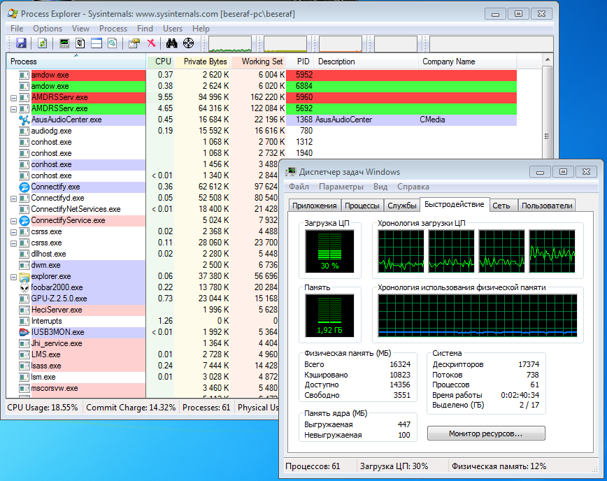 Всех приветствую. С чего начать рассказ? Короче в последнее время компьютер стал подлагивать, а в играх иногда слайд шоу можно было увидеть. В чём дело не мог понять. Решил переустановить систему. Сегодня переустановил она с нуля. Поставил драйверы, пару программ, драйвера. Обновления пока не качал, но windows 7 (U) x64 SP1 лицензионная. Запустил ведьмака, а там дикие лаги, да был ещё хром открыт стрим на ютубе, я его закрыл и лаги вроде бы ушли, но тут я решил запустить утилитку Process Exploder и посмотреть что за погань у меня потребляет процессор, хотя у меня ничего не работает, плеер, но он не потребляет столько. Процессор у меня i5 3570K Разогнанный до 4400Mhz. И что я вижу? Ту погань делает процесс от компании АМД.