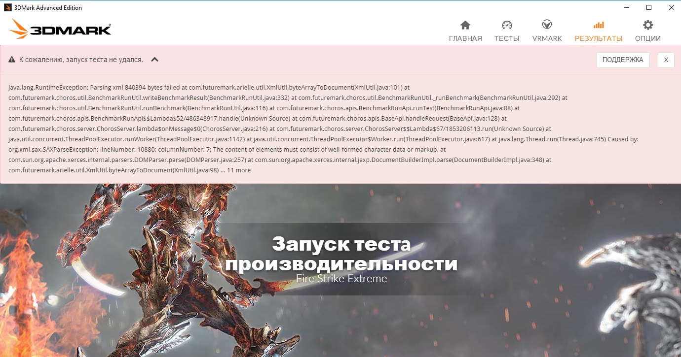Не знаю где спросить, решил прогнать 3dmark последний на компе, так как он сегодня какую то обнову начал тянуть, как оказалось его и переделали, теперь каждый тест нужно качать отдельно, он у меня в стиме, подарили ключ вместе с картой. Запускаю любой тест, все сцены проходит, а результат в баллах не выдает, пишет "к сожалению, запуск теста не удался" хотя в каждом выбраном тесте без проблем проходит все под тесты, Graphics test 1 Graphics test 2, Physics test, Combined test но результата не выдает, чо делать ?) драйвера последние, на 10ке все обновы