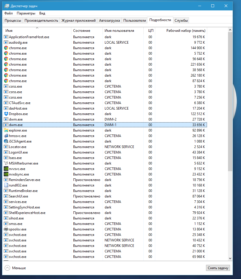 olegdjus Так вроде все норм за исключением странного поведения процесса dwm.exe, он запускается в 2-х, 3-х копиях... Скачки частоты видеокарты совпадают с запуском второй/третьей копии этого процесса