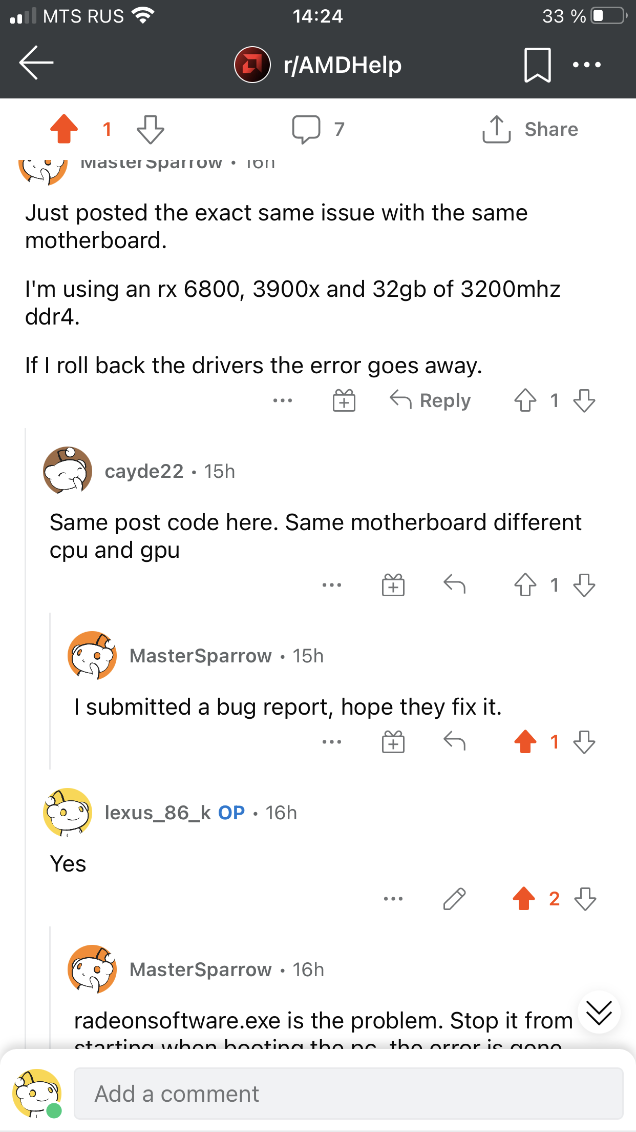Добавлено спустя 3 минуты 11 секунд: И ещё в моей уже ветке , люди пишут о такой же проблеме Причём , что я, что они когда откатывают драйвера, код пост нормальный становится . Совпадение ? Не думаю