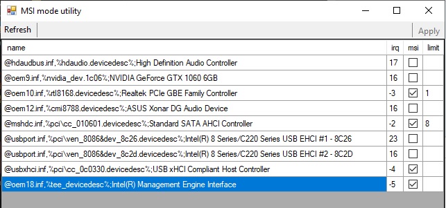 https://ru.wikipedia.org/wiki/Message_S ... Interrupts По сути она правит одну запись в реестре для соотвествующего устройства. HKEY_LOCAL_MACHINE\System\CurrentControlSet\Enum\PCI\%устройство%\Device Parameters\Interrupt Management\MessageSignaledInterruptProperties