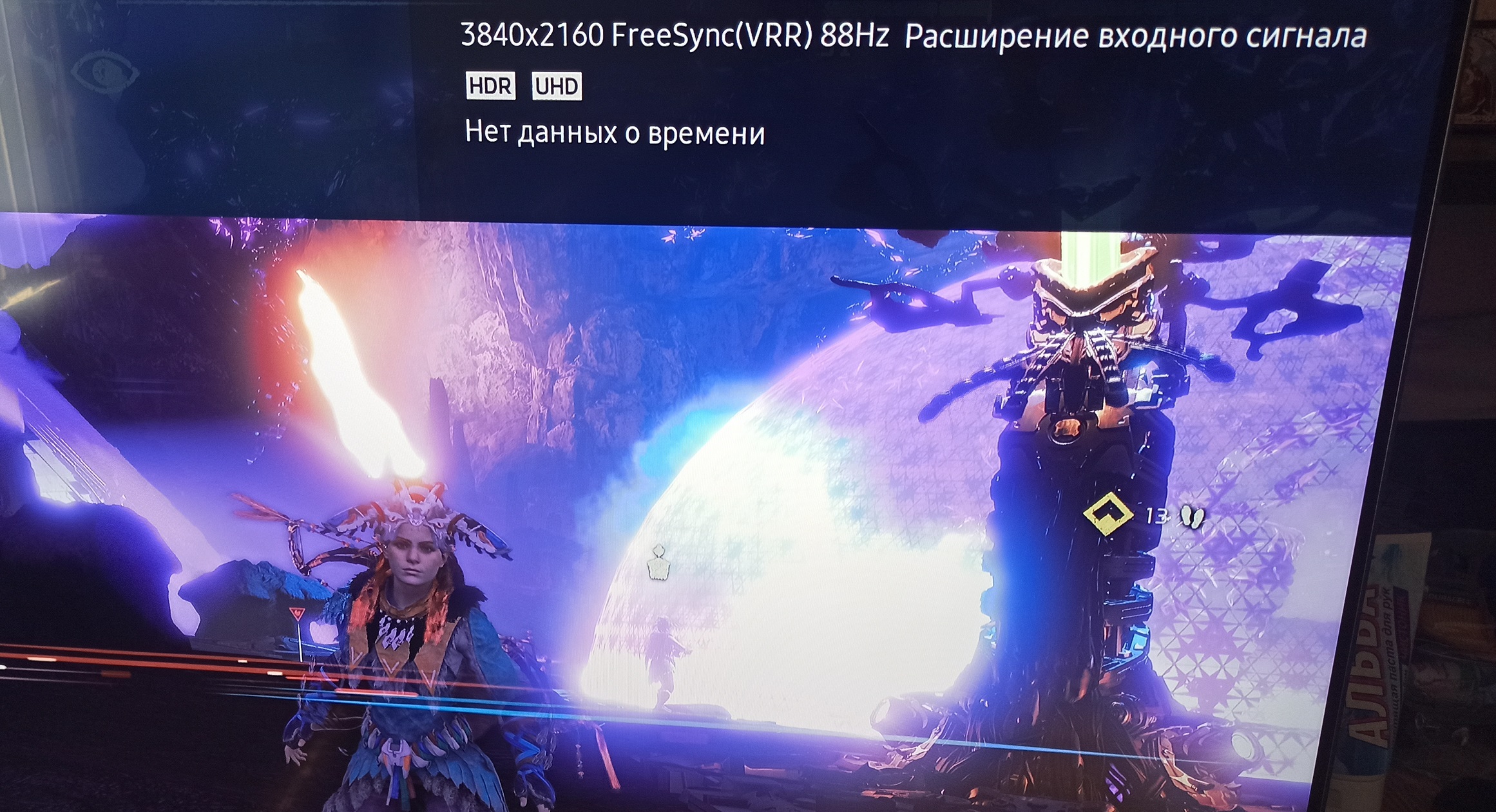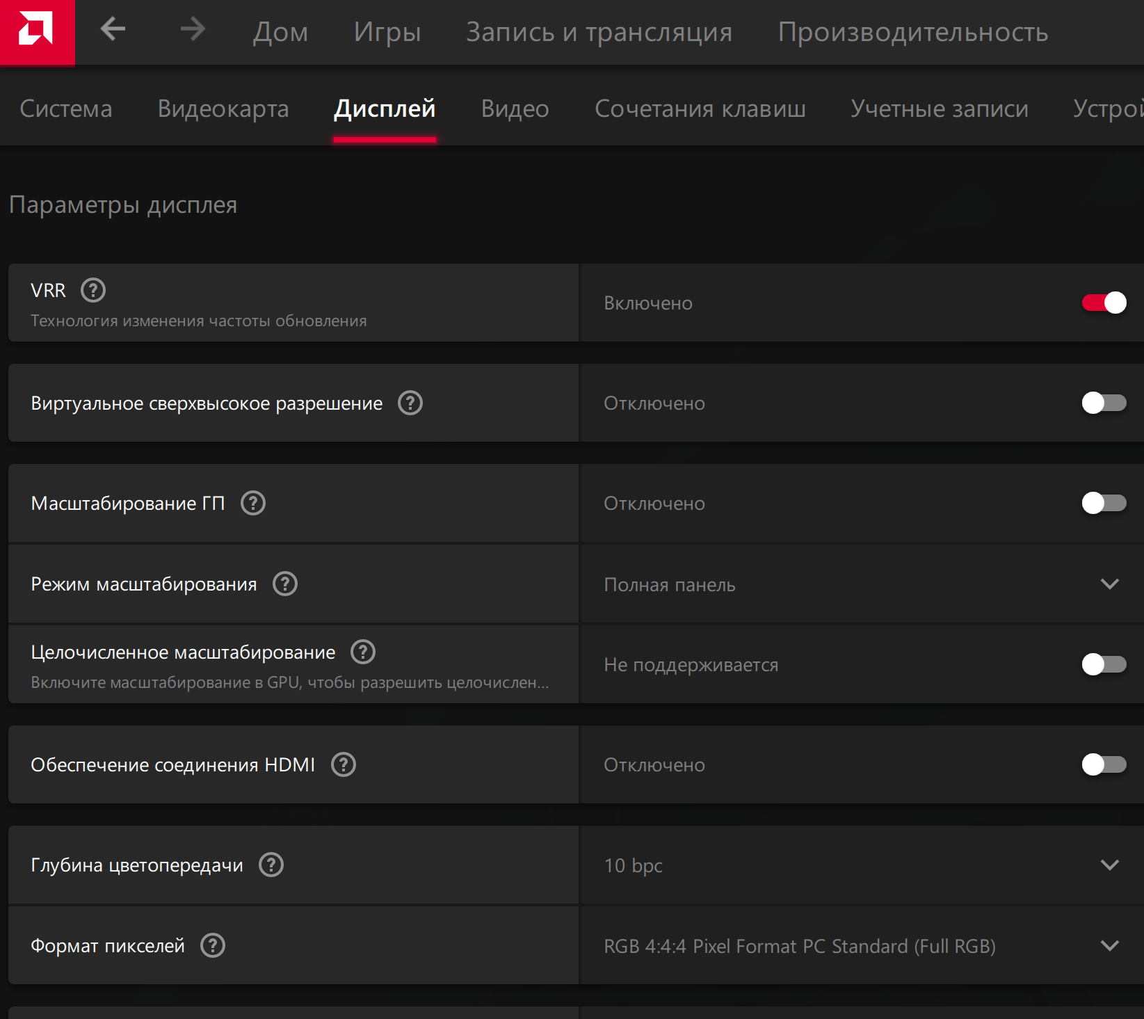 В этом телевизоре реализована поддержка технологии AMD FreeSync. Диапазон поддерживаемых частот, который указывается на панели настроек видеокарты, равен 40—120 Гц для режимов с кадровой частотой 120 Гц.