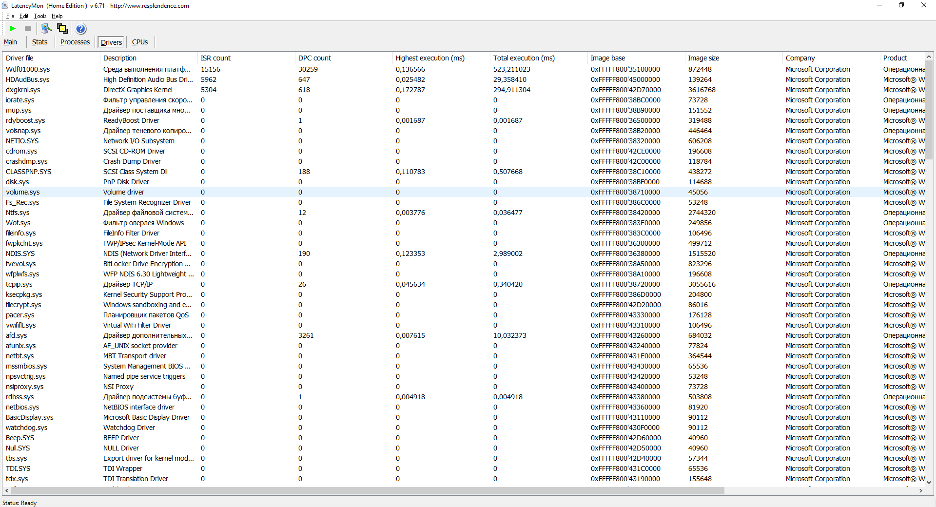 Осуществлять мониторинг программойLatency Monitorнужно в течение 1 минуты, в состоянии простоя системы т.е. без дисковой, сетевой активности, и любой другой, с выключенным ав и приложениями в трее и автозагрузке, не раньше чем через 2 минуты после загрузки системы. Не двигаем мышку и не используем клавиатуру в момент измерений. Потом остановка и скриншот.