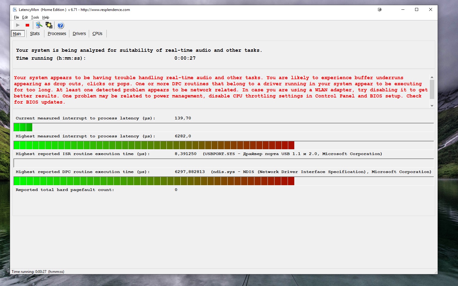 Скаут ну так у тебя все видно ж на скриншоте, сбоят дрова на усб и сетевуху ставь другие, подбирай. Я помню у меня на 3770к звук тррррррррррррррр делал, тогда еще ни про какие латенси моны и знать не знал, мб их и не было, но на одном форуме сказали, что дело в дровах на сетевуху и дали ссылку на версию дров где все ок, а никакие другие не помогали, так и просидел на старой версии без проблем