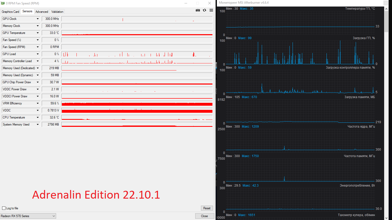 Добрый день. Проблема с драйвером АМД, после установки драйвера ВЫШЕ этой версии (Adrenalin Edition 22.10.1), видяха ведет себя нестабильно в простое (скачат частоты, напряжение и т.д) (см скрины). Пробовал ставить разные версии из свежих (со сбросом настроек), обновил BIOS, винду. Толку 0, может кто сталкивался и может подсказать решение данной проблемы?