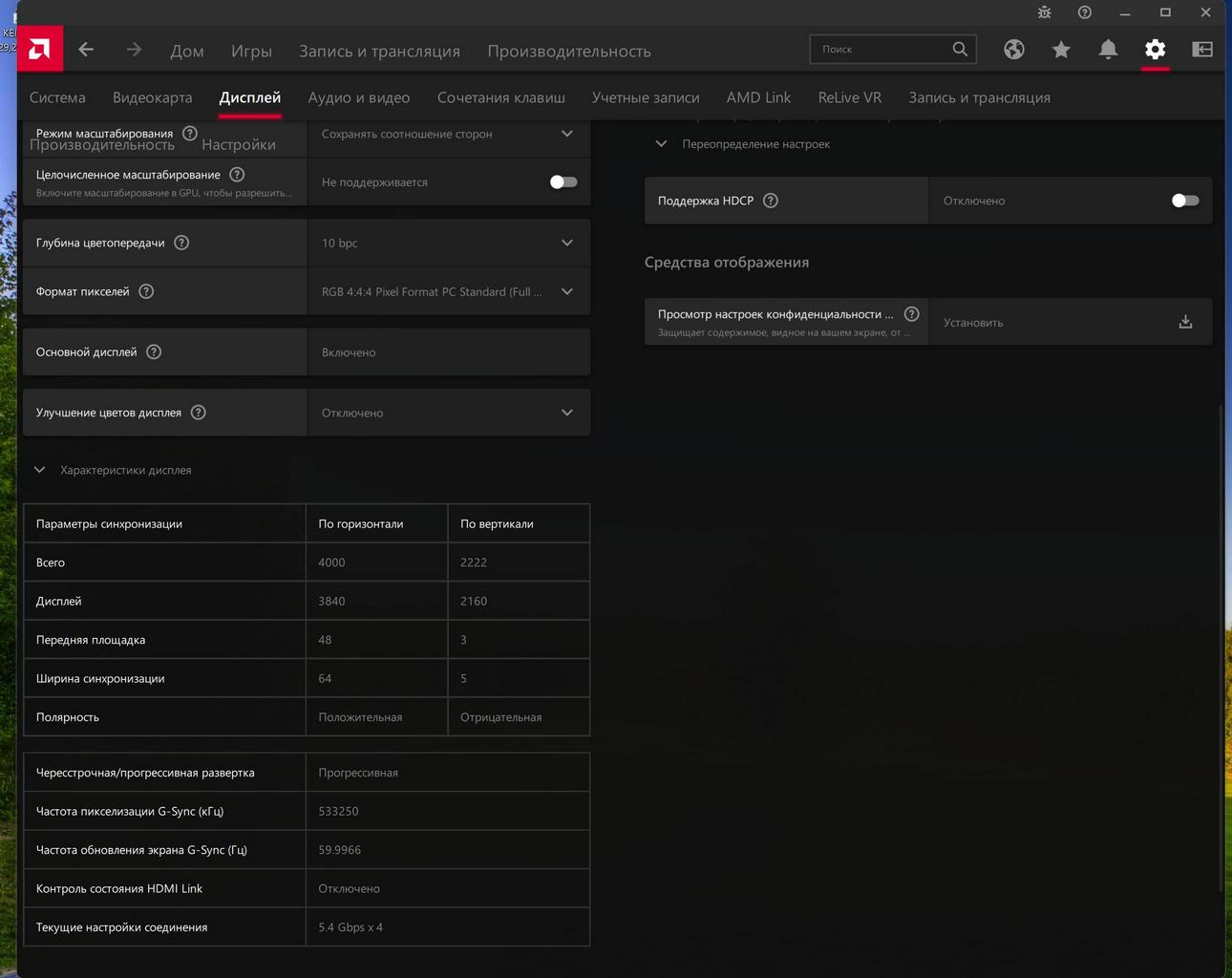 Jack00761 Зайдите ПО Radeon, настройки(значок шестерёнки), Display(Экран?), в самом конце списка нажмите Display Specs (Хз как по-русски, но оно в любом случае в самом конце). Разверните всё это добро чтобы было видно всю информацию раздела Display и сделайте скриншот.