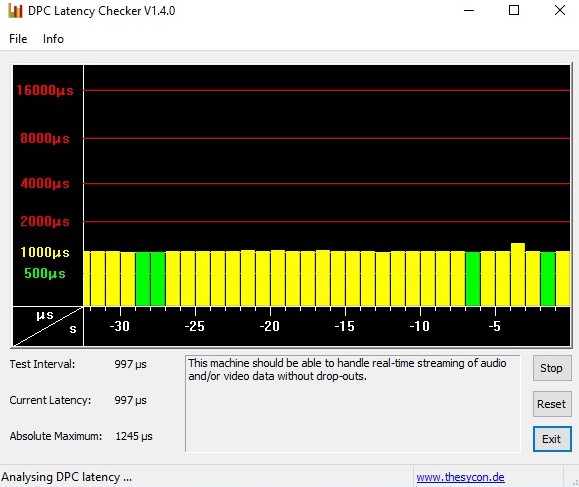 Осуществлять мониторинг программойLatency Monitorнужно в течение 1 минуты, в состоянии простоя системы т.е. без дисковой, сетевой активности, и любой другой, с выключенным ав и приложениями в трее и автозагрузке, не раньше чем через 2 минуты после загрузки системы. Не двигаем мышку и не используем клавиатуру в момент измерений. Потом остановка и скриншот.