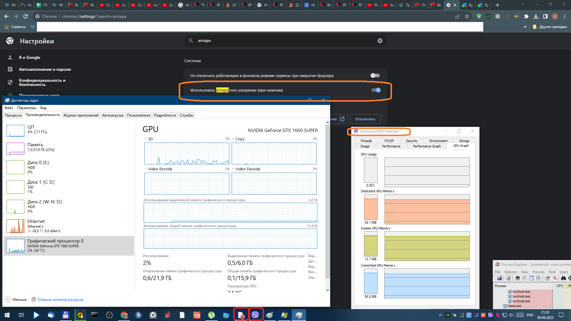 Вот сейчас на 2м ПК у меня открыто 30-40вкладок в хроме, вайбер, 2й браузер swar iron - это все жрет VRAM.