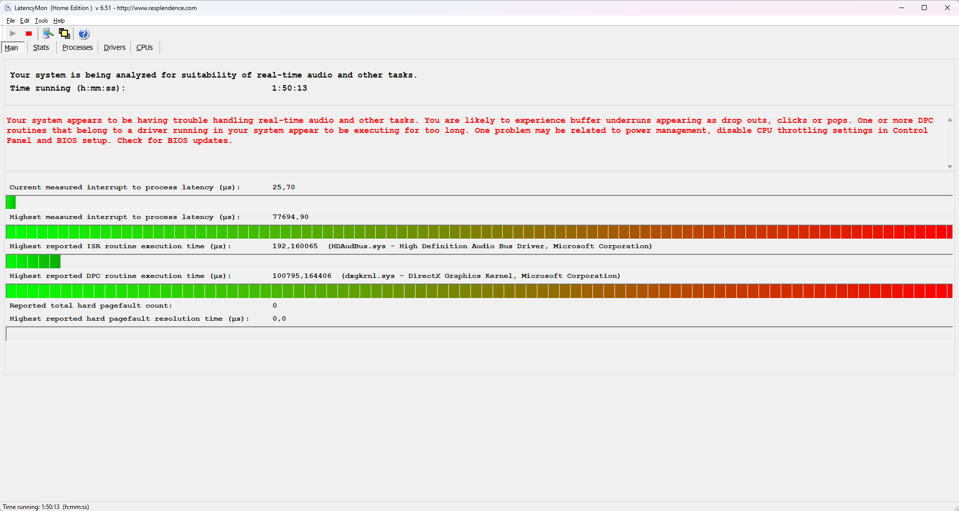 Столкнулся с проблемой - периодически заикается звук, а так же начинает подлагивать курсор в браузере. Как полагаю, это и есть та самая легендарная DPC latency? Запустил latency monitor, показывает это: