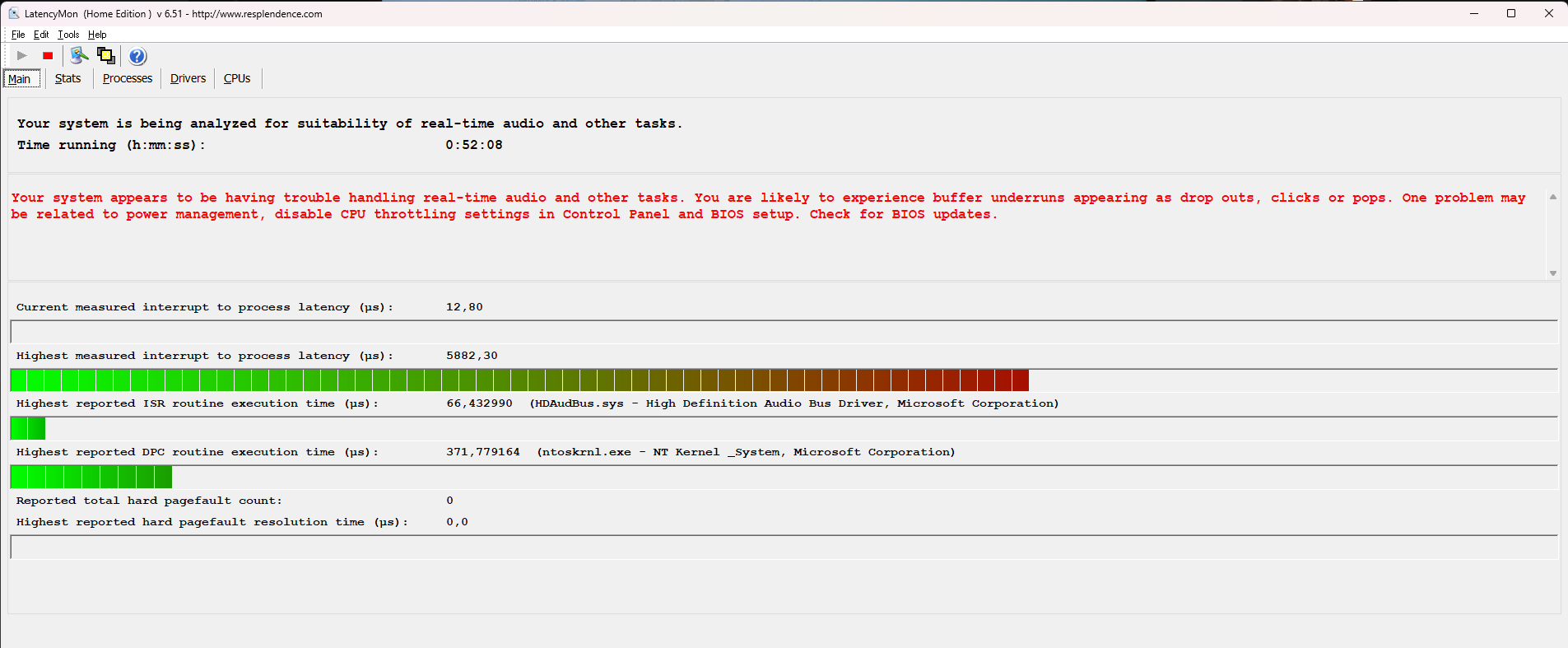 Теперь по dpc 1 час 50 теста?, пк засыпал или переходил в энергосберегающие режимы?, за это время?, или в режиме низкого энергопотребления цпу?, выход из них, может показать сверх высокие показатели, или привести к отвалу некоторых драйверов и периферии, особено юсб.