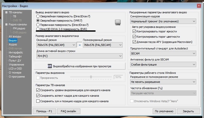 Ну, ТВ-Тюнер об этом не знает. EVR в нем выставляется по умолчанию, если ОС старше Висты. Соответсвенно, даже после полного его сноса и переустановки он просто не запускается. Случайно выяснил, что если выставить совместимость с ХР, то по умолчанию при первом запуске выставится другой режим, и программа запустится.