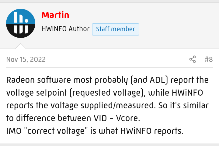 Вообще, "Автор" вроде о другом там говорил, а что касается напряжения в HWInfo - транзитные значения Vout видимо рез-т "усреднения" и/или гистерезиса по интервалу опроса, в проге или в настройках XDPE132G5D, .
