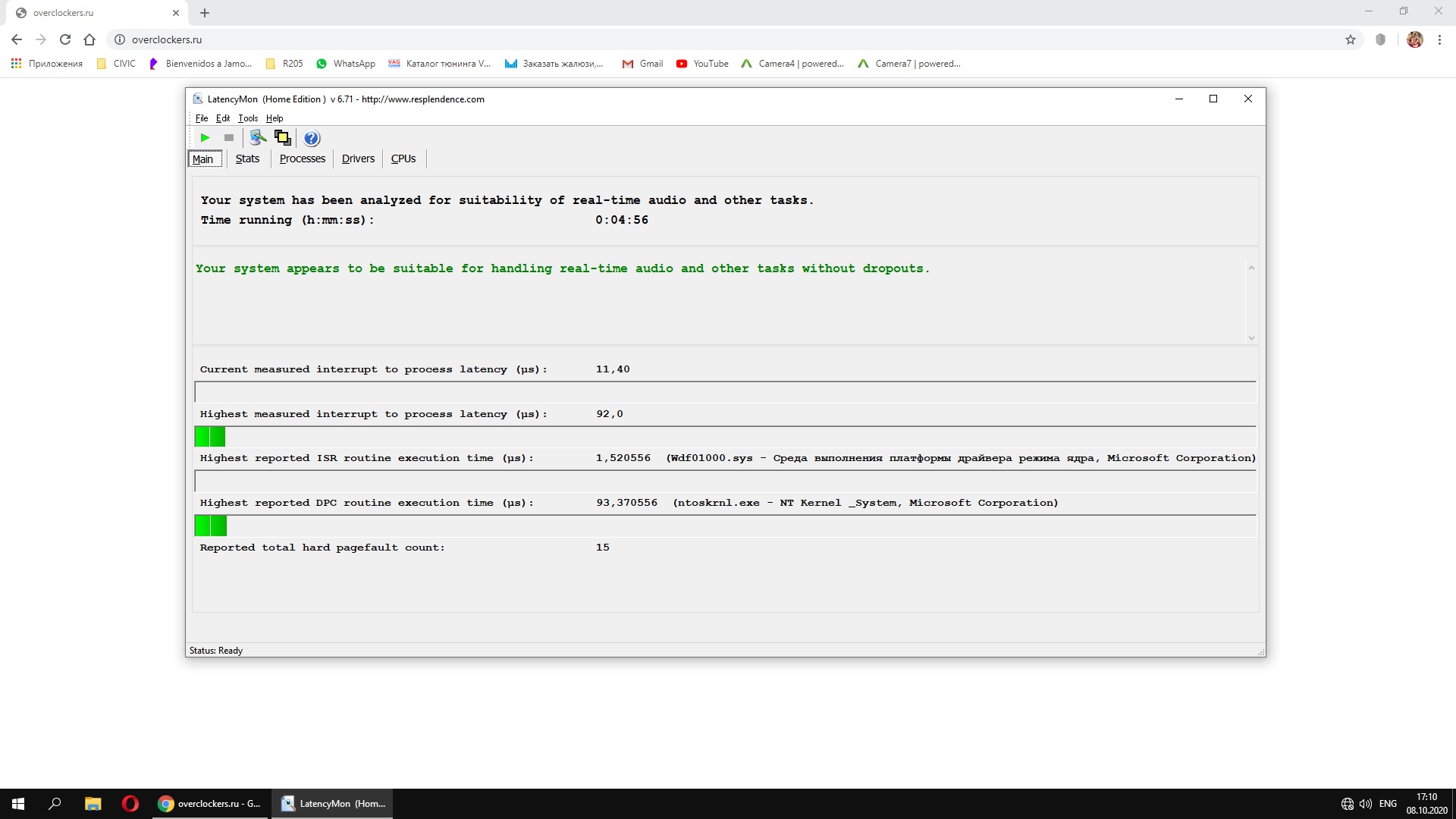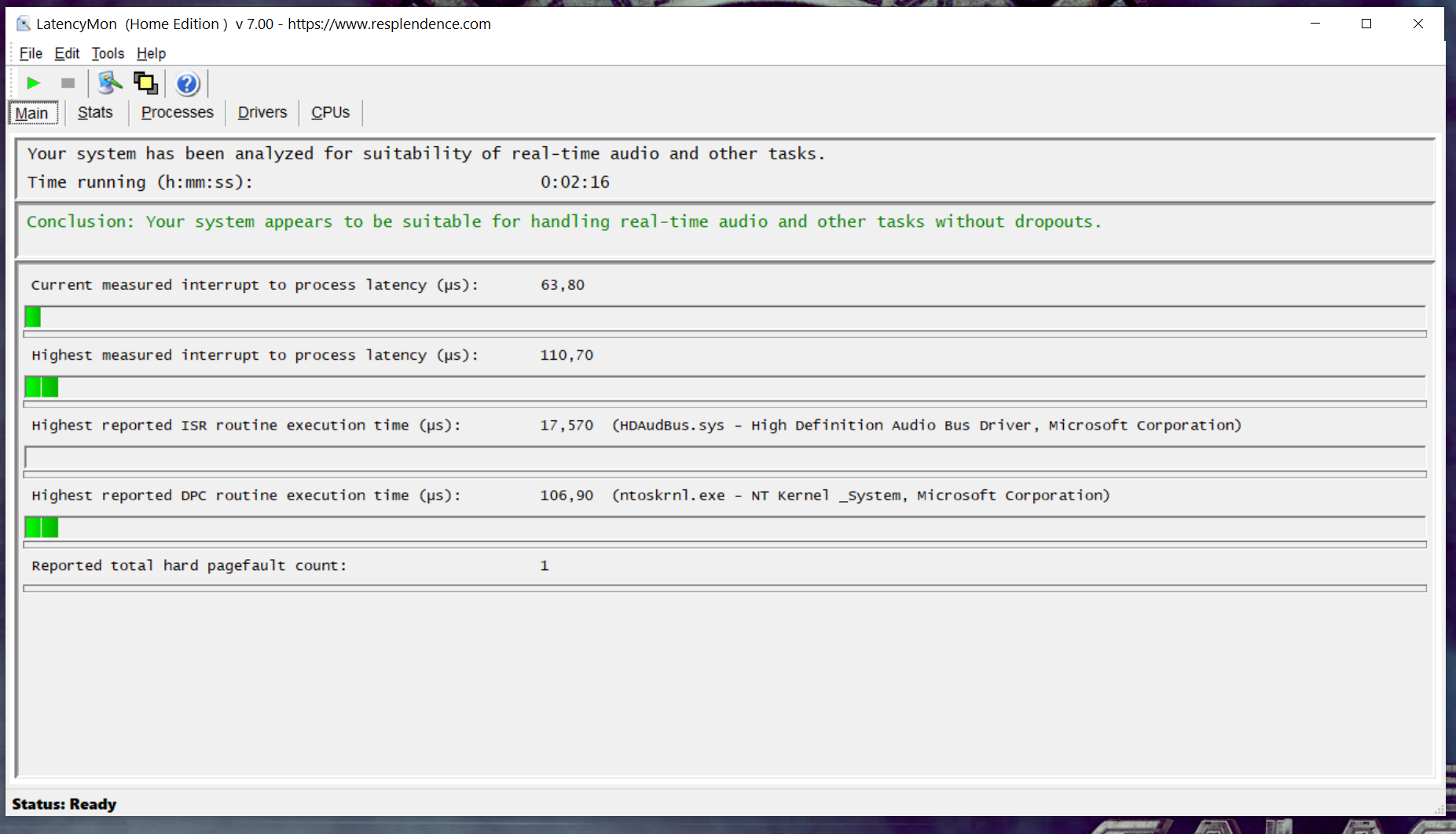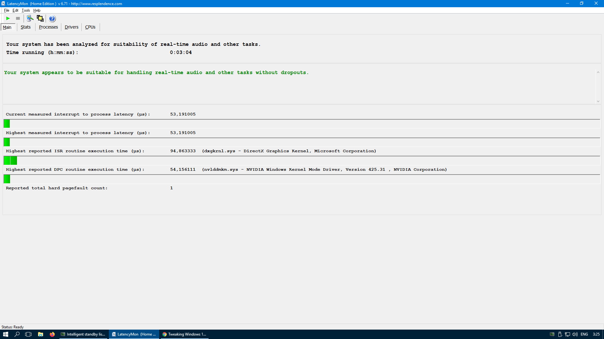 Так делать неправильно. LatencyMon драйверов нужно смотреть на фоне простоя без запуска программ.