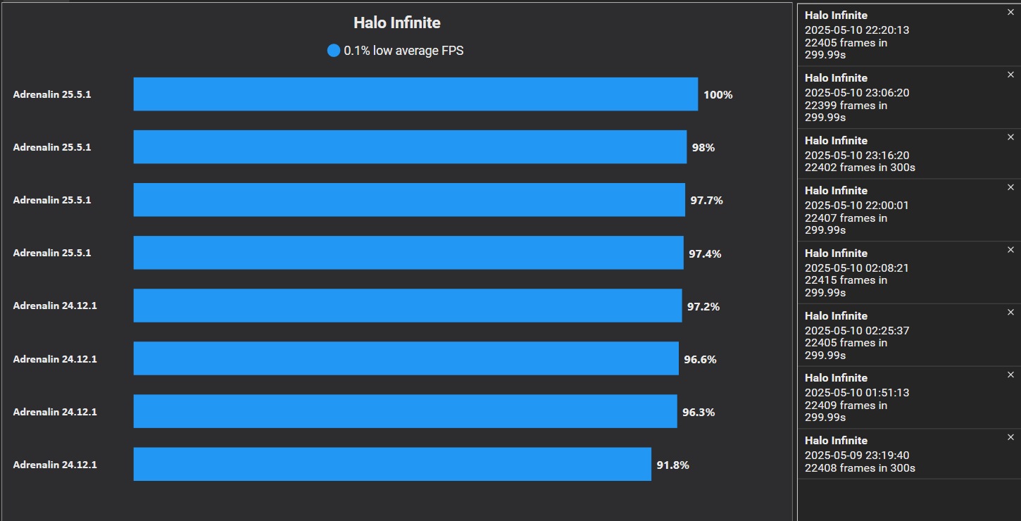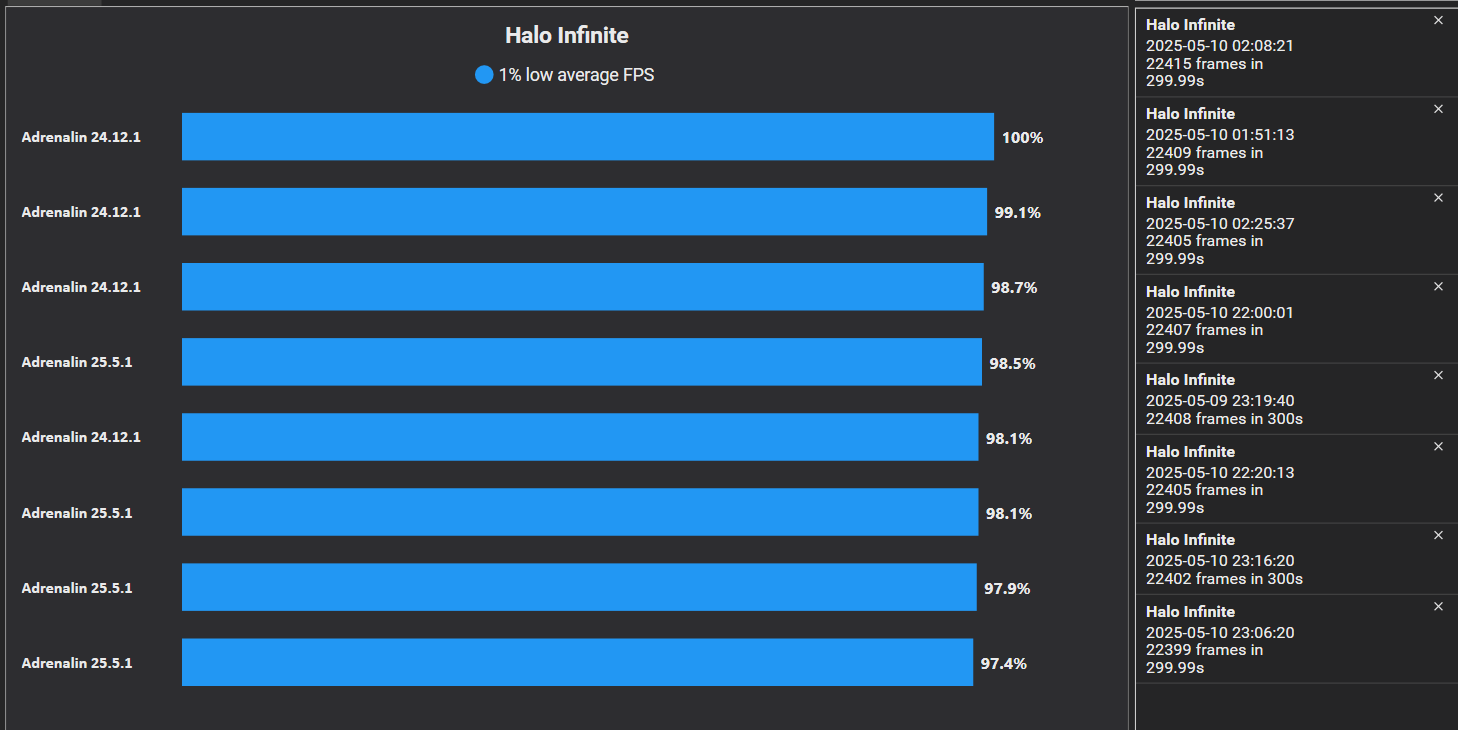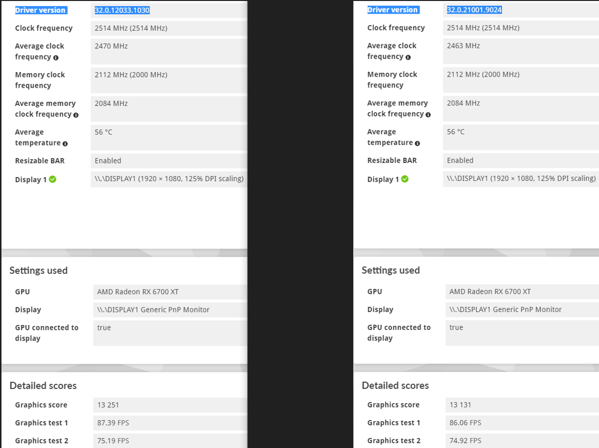 главное личный субъективный комфорт, замеры и статистика это наглядно и хорошо - для анализа, но я бы снимал результаты, когда весь кэш в ...\AppData\Local\AMD переcобрался бы, включая системный, т.е время какое-то "обкататься" драйверу нужно.