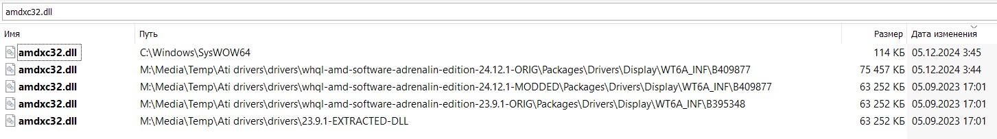 Aboutyourmind еще раз спс, все равно не срослось у меня с мод драйвером. То ли 24.12.1 не подходит, то ли руки кривые - не встает. Подумал и накатил чистые 23.9.1 - профит, системные файлы на скринах выше изменились, в игре есть изменения в лучшую сторону. Но один фиг хуже чем FSR3, то есть технически в статике картинка улучшилась (ценой -10фпс), но в динамике нестабильна - мерцания, шлейфы. Может игра такая, может сыро еще на 6ххх картах, короч пощупал и наигрался пока. Подожду готовый удобный способ, чтобы не грешить на руки или систему, а сейчас откатываюсь.