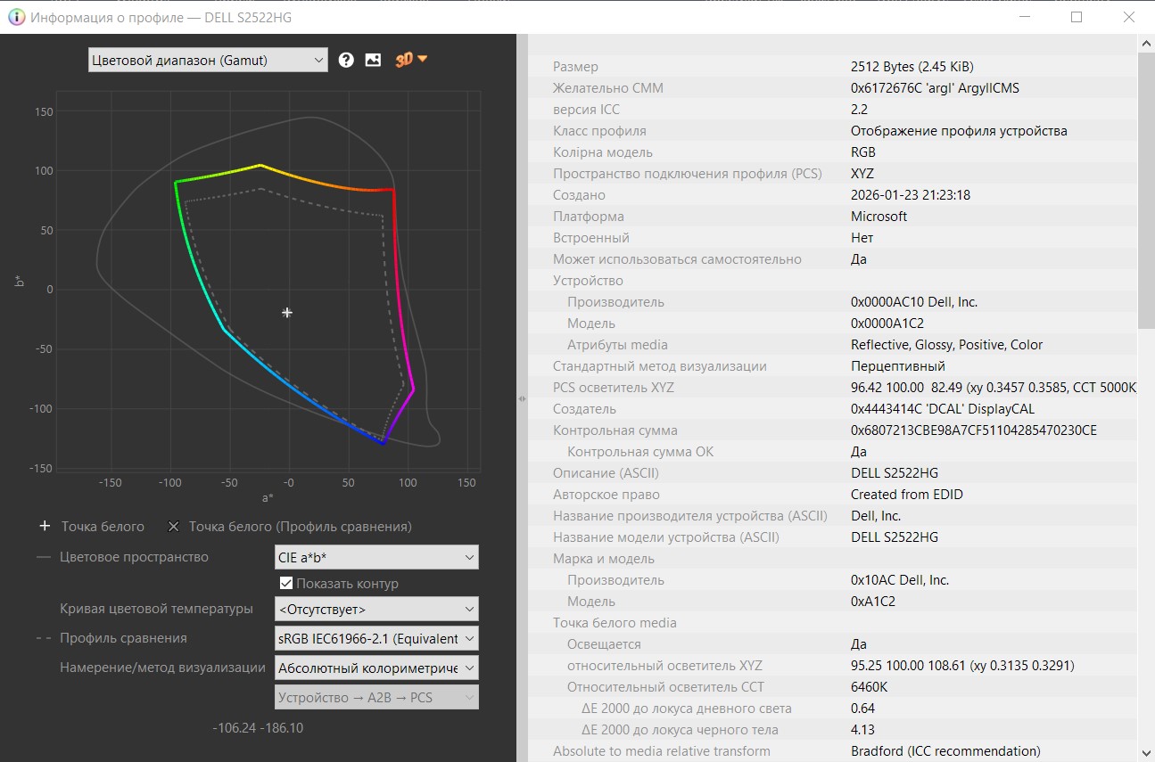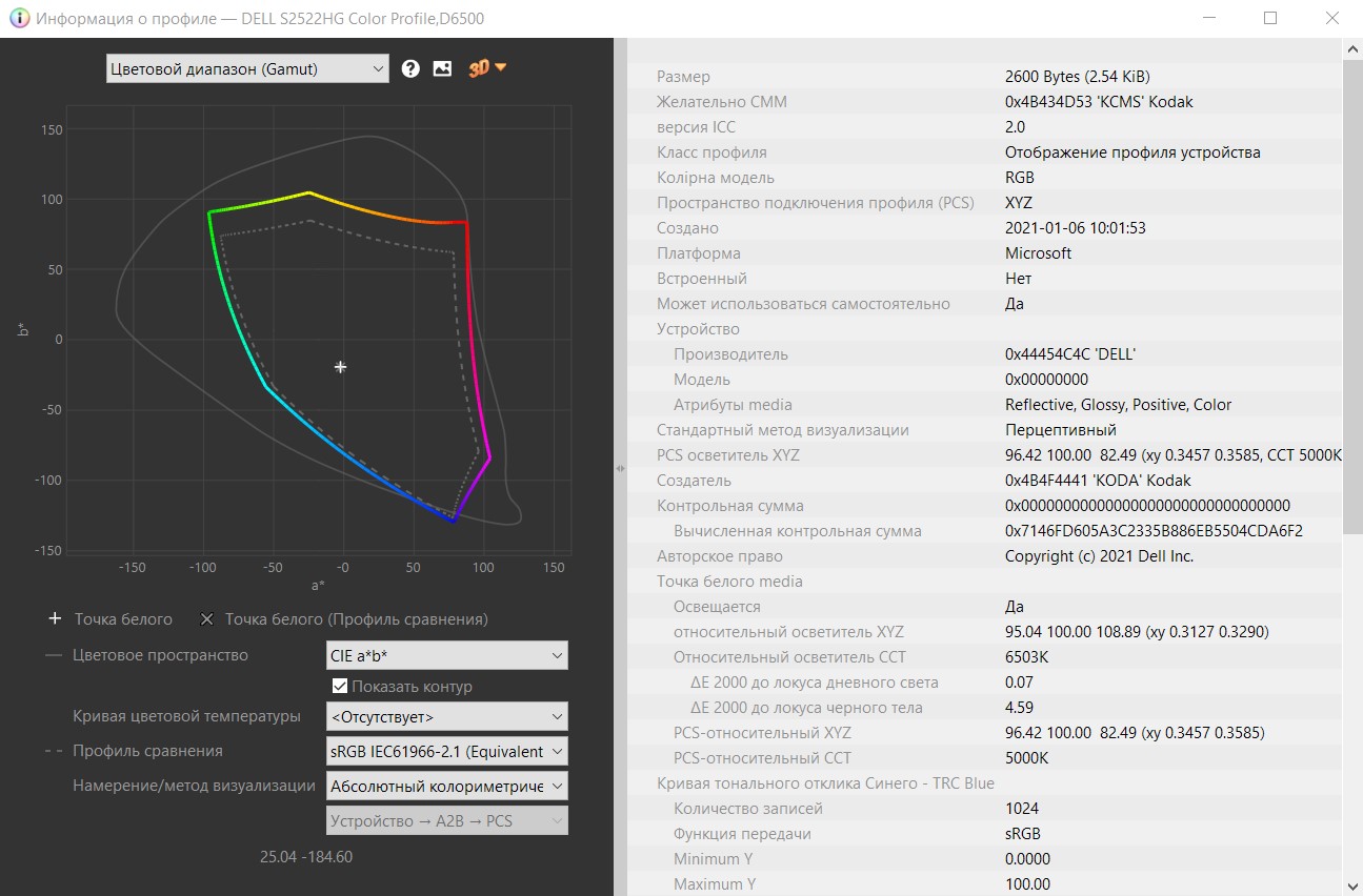 WhiteRatify то что твой профиль от производителя совпадает с данными EDID и подтверждается стронним тестированием это хорошо и дает тебе возможность использовать эмуляцию sRGB адреналином не боясь кривого результата. вот и всё. ну ты же видишь, что твой монитор работает за пределами sRGB. эмуляция sRGB для того и существует, что бы исправить этот момент. я же не могу позволить себе такой роскоши из-за кривого EDID.