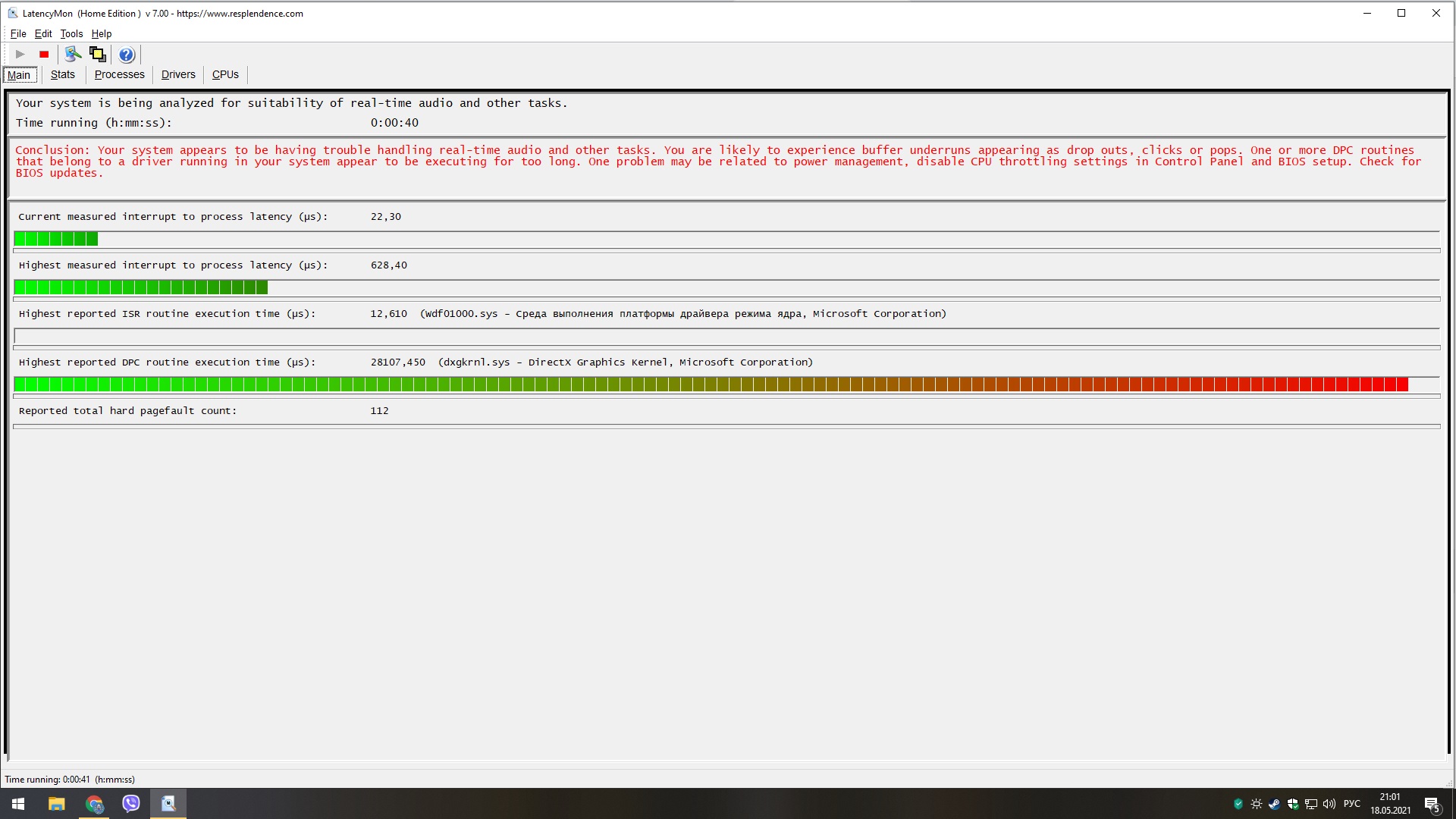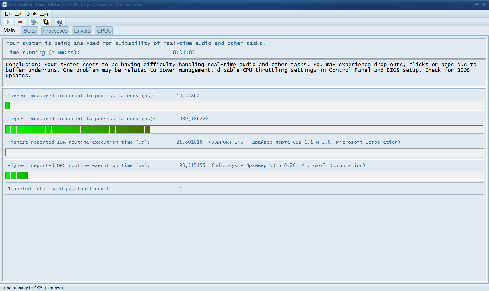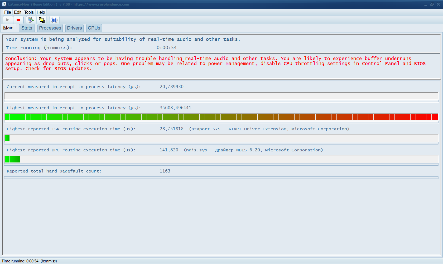 NOTE: some processes were hit by hard pagefaults. If these were programs producing audio, they are likely to interrupt the audio stream resulting in dropouts, clicks and pops. Check the Processes tab to see which programs were hit.