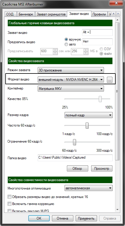 Egik72-2 спасибо! нашел, получше настроил, вес файлов правда сразу увеличился в двое, но и качество стало получше, в обще как вы и сказали надо "поиграться" с параметрами, найти компромисс между качеством записи и падением FPS.