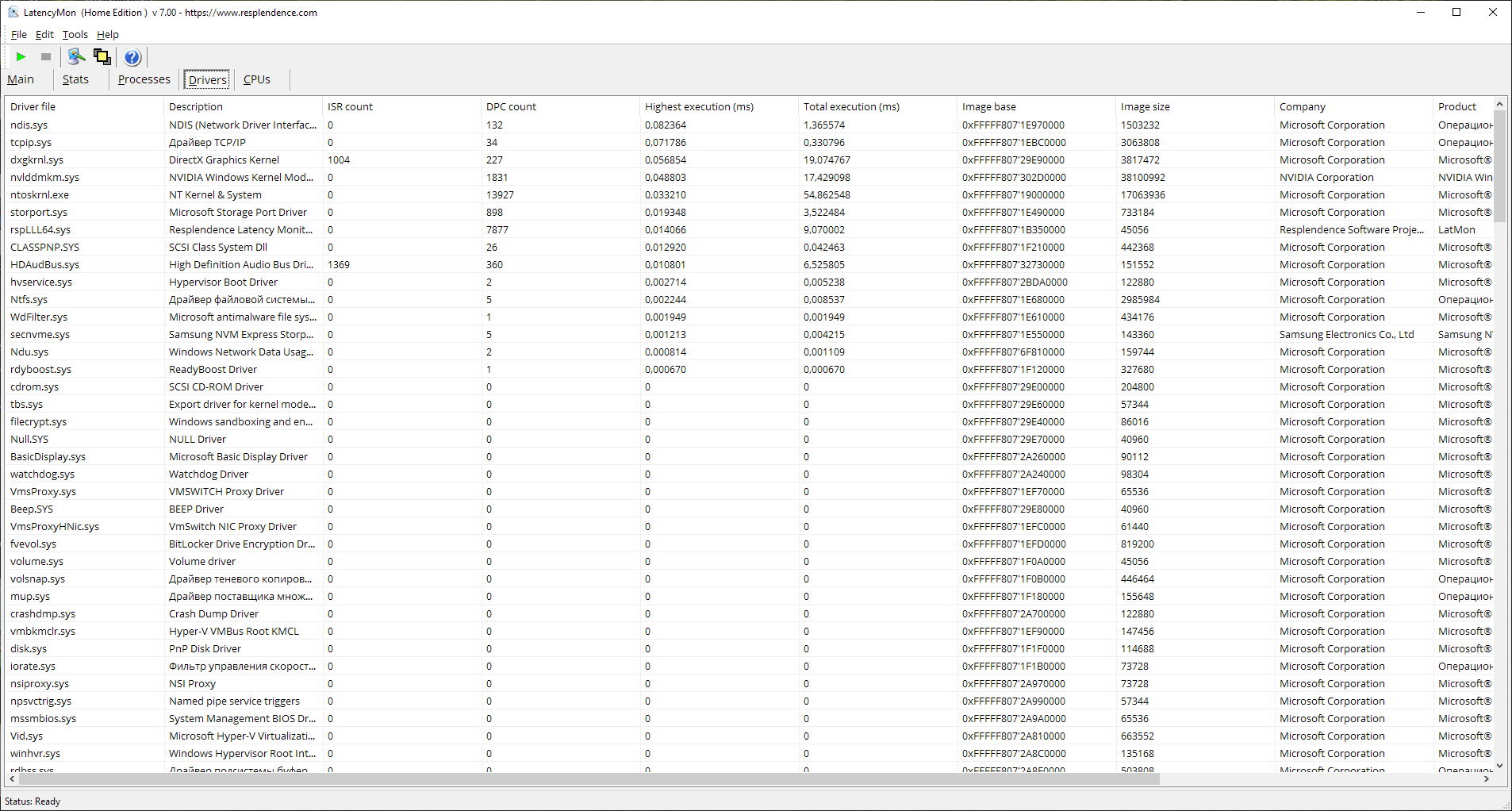 Осуществлять мониторинг программойLatency Monitorнужно в течение 1 минуты, в состоянии простоя системы т.е. без дисковой, сетевой активности, и любой другой, с выключенным ав и приложениями в трее и автозагрузке, не раньше чем через 2 минуты после загрузки системы. Не двигаем мышку и не используем клавиатуру в момент измерений. Потом остановка и скриншот.