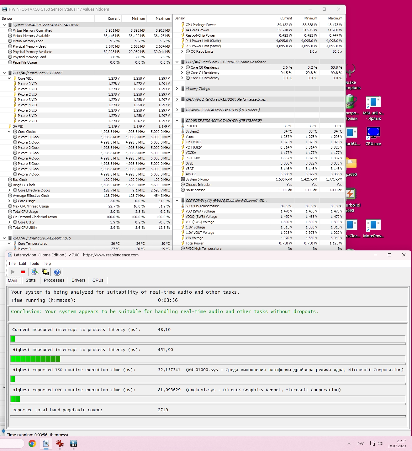 Осуществлять мониторинг программойLatency Monitorнужно в течение 1 минуты, в состоянии простоя системы т.е. без дисковой, сетевой активности, и любой другой, с выключенным ав и приложениями в трее и автозагрузке, не раньше чем через 2 минуты после загрузки системы. Не двигаем мышку и не используем клавиатуру в момент измерений. Потом остановка и скриншот.