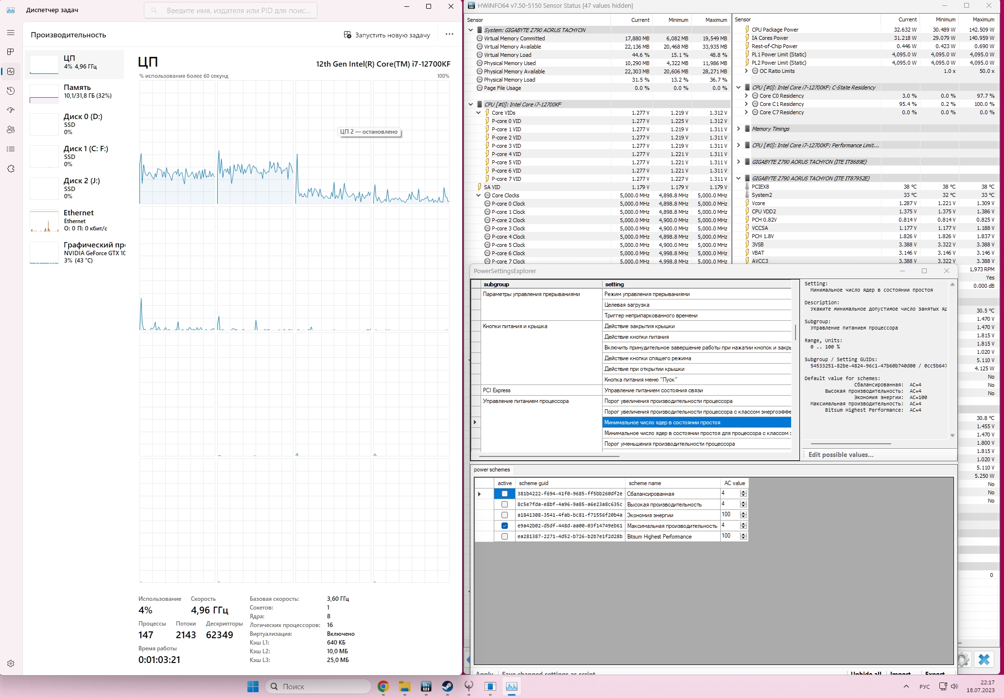 Вообще все проблемы в том, что все настройки "плана питания" никто десятилетиями толком не трогал. Почти все они не менялись минимум со времён Win7, внося очень мало изменений. Поэтому "балансировщик" нагрузки работает одинаково, что с 2, что 256 ядрами - как говно. А гибрид вообще стал шоком, даже не смотря на то что там были предусмотрены параметры для энергоэффективных ядер. Хотя в последних билдах Win11 они и накинули новых параметров, там всё равно работы непочатый край.