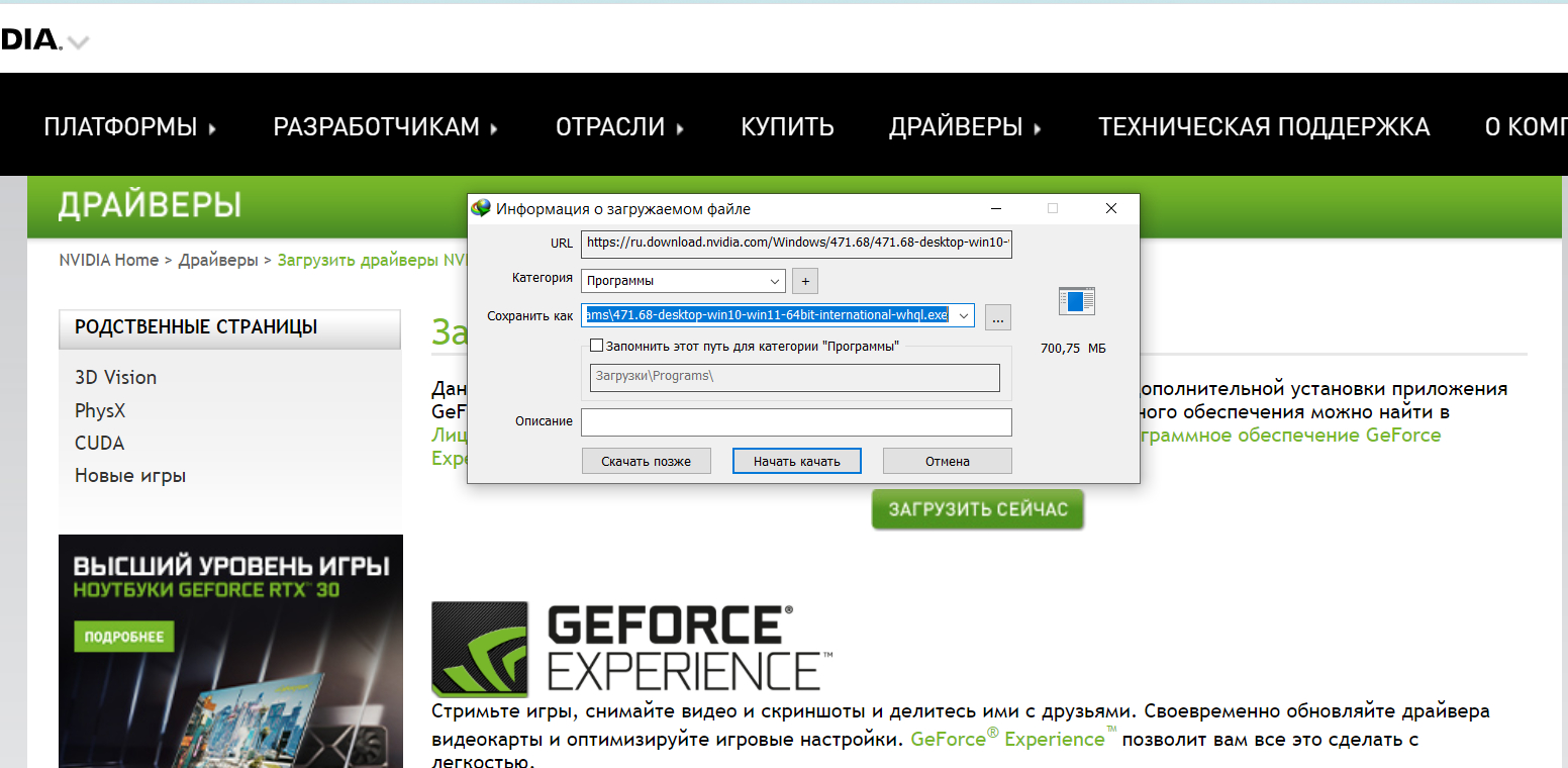 Зачем лазить и искать по сайту Нвидия. Давно есть сайт гуру3д. Там всегда есть прямые ссылки на нужные версии дров. Никогда не качал прямо с сайтов ни красных, ни зелёных.
