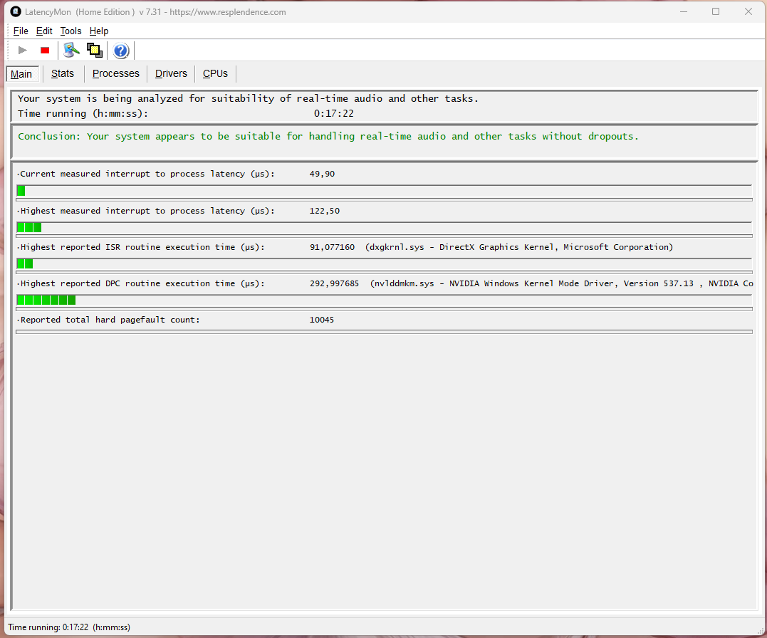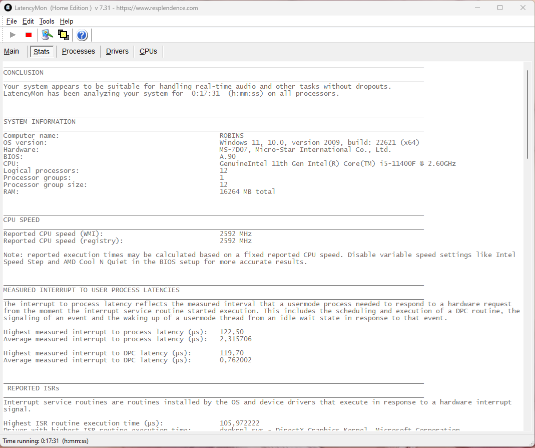 Latency moon прога красивая, но бесполезная... на вин 10 идельные показания зелёные показывает что в простое что в играх.. а на вин 11 сходуже при старте винды показывает задержку критическую ошибку...